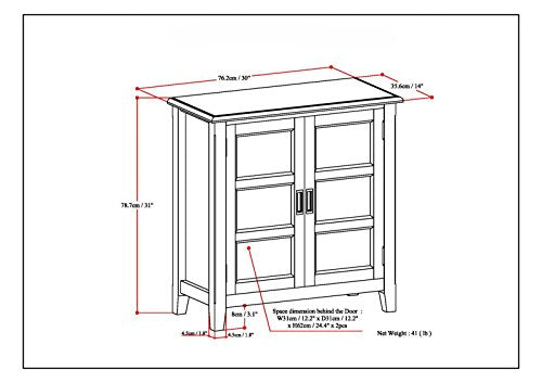 You like to be neat and tidy...that's good, so do we. We designed the Burlington Low Storage Cabinet to organize and enhance the design of your home. Two enclosed adjustable shelves offer the versatility to effortlessly organize and stow away anything you wish. Whether you use it to display your favorite knick knacks or tuck away all those toys, boxes, and extra linens the Burlington Low Storage Cabinet allows you to hide away the clutter behind beautifully designed wood doors. With a rich Mahogany Brown stain, tapered legs and dupont top profile, this beautiful and functional piece can be used in any room in your home.; Efforts are made to reproduce accurate colors, variations in color may occur due to computer monitor and photography; At Simpli Home we believe in creating excellent, high quality products made from the finest materials at an affordable price. Every one of our products come with a 1-year warranty and easy returns if you are not satisfied