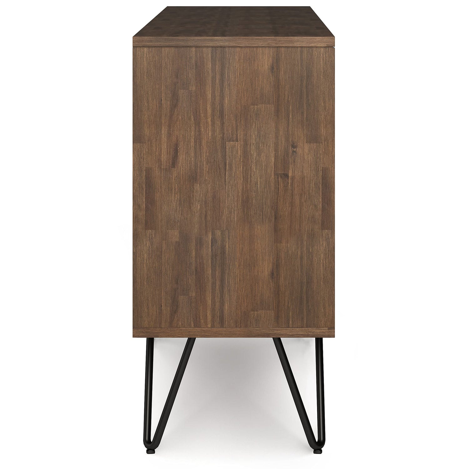SIMPLIHOME Chase SOLID ACACIA WOOD and Metal 54 inch Wide Modern Industrial Low Bookcase in Rustic Natural Aged Brown