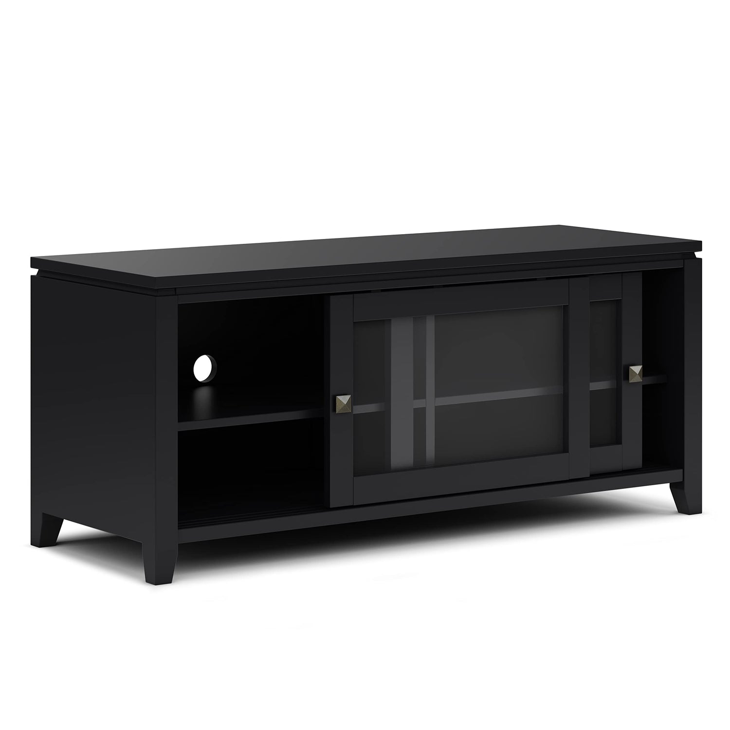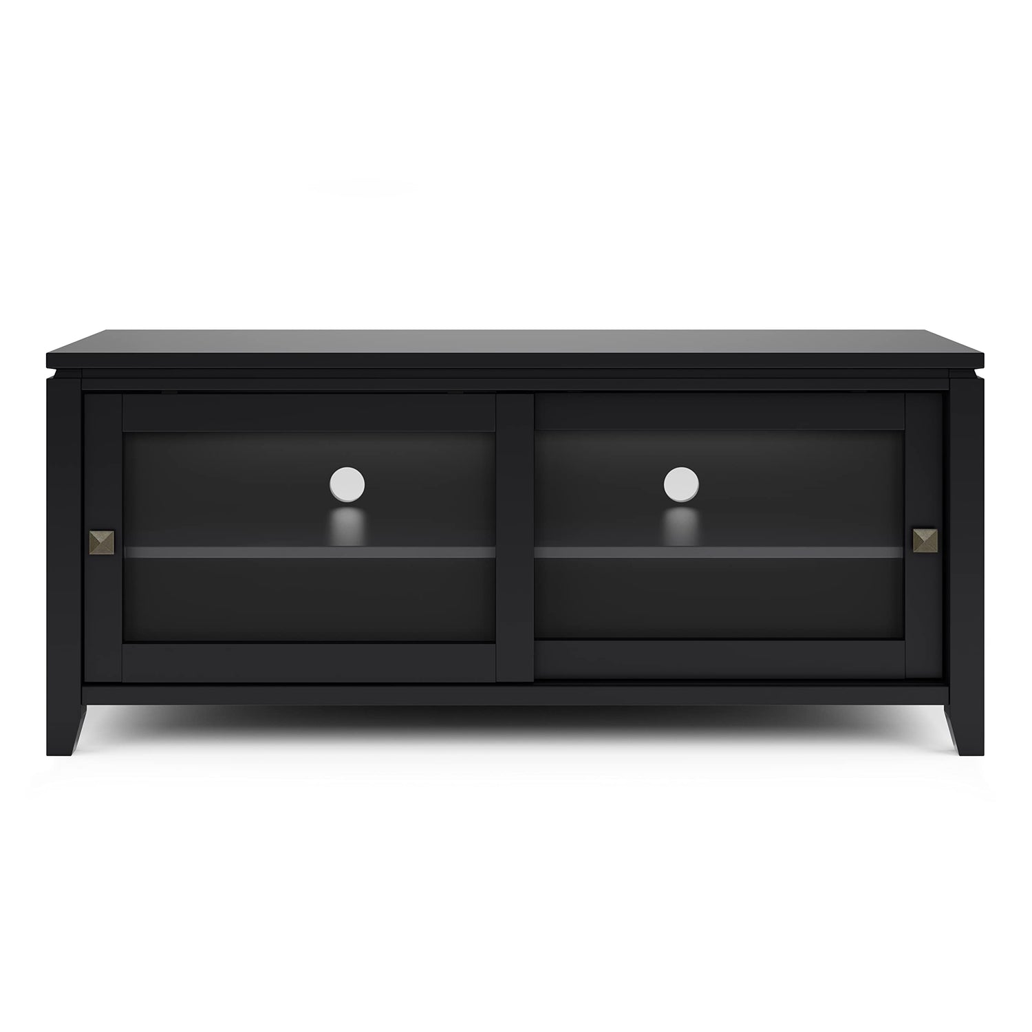 SIMPLIHOME Cosmopolitan SOLID WOOD 48 Inch Wide Contemporary TV Media Stand in Black for TVs up to 55 Inch, For the Living Room and Entertainment Center
