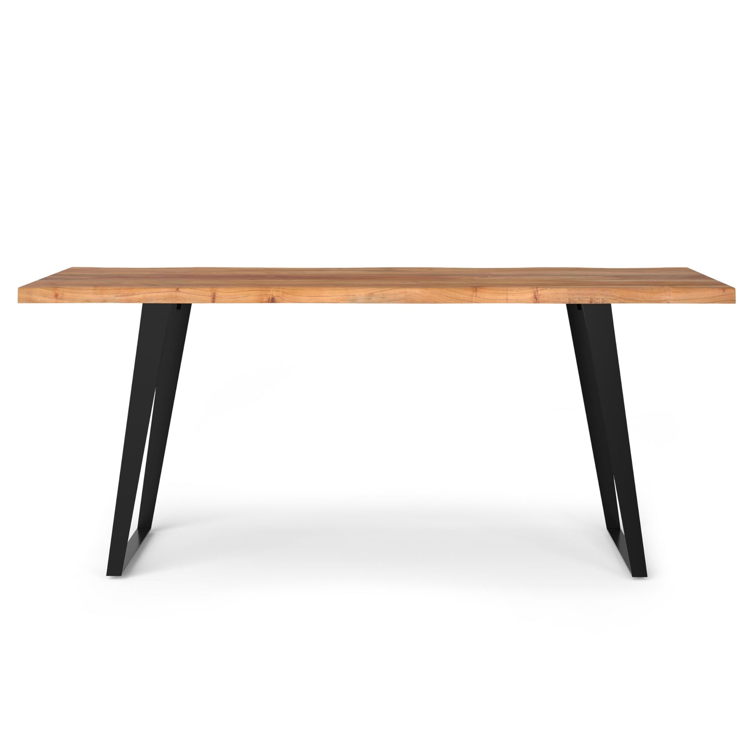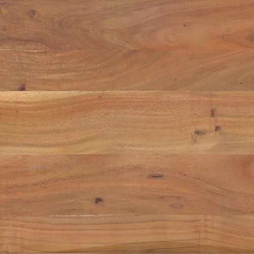 - Made with sustainably sourced solid acacia wood in a Natural finish, the thick tabletop is comprised of 2 panels connected by butterfly joints and has live edges on the longer sides that give this dining room table a rustic, natural look.