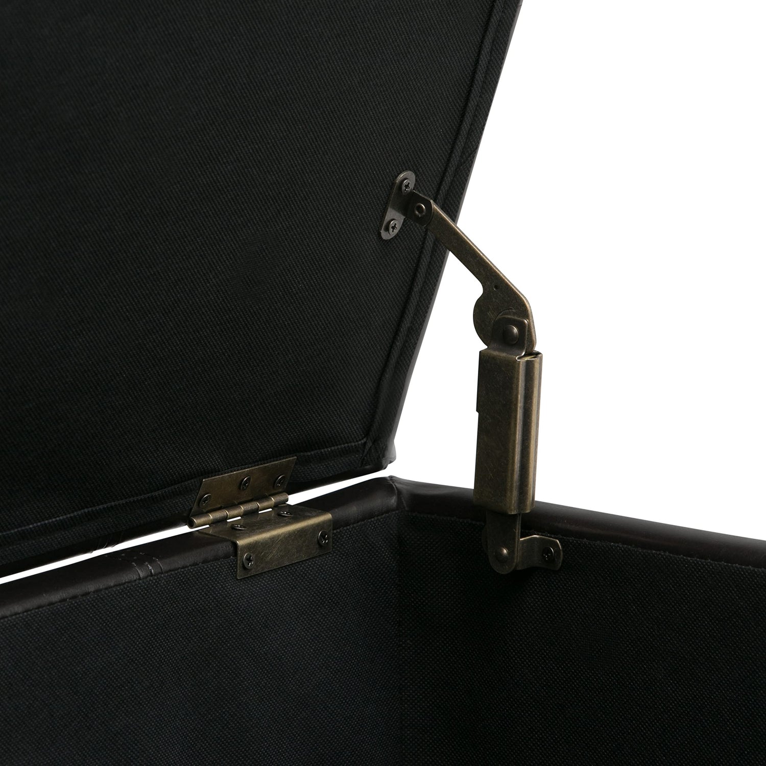 Details: For a stylish solution to your storage needs, the Dover Rectangular Storage Ottoman features a beautiful stitched look with a lift up lid and large interior storage space. The unit is made from durable Tanners Brown Faux Leather and is extra strong and sturdy. Whether you use this ottoman in your entryway, living room, family room, basement or bedroom, it will allow you to hide away all that mess. This attractive ottoman is available in Brown, black, cream and red.