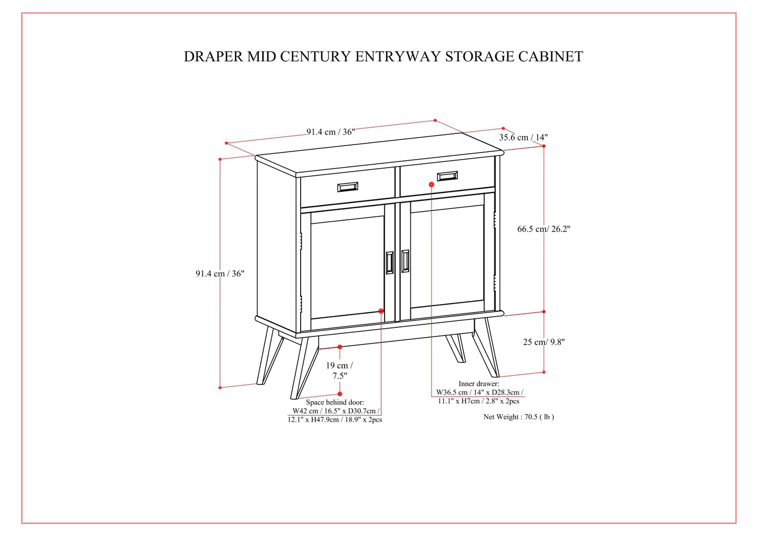 Details: Your entryway is the main traffic zone of your home and sometimes it can be a mess! It is for this reason we designed the Draper Entryway Storage Cabinet. Two drawers conveniently hold your personal items while the tempered glass two door cabinet has two adjustable shelves that offer an abundance of space to store away anything you wish to remain hidden...your secret is safe with us. But don't be limited by our description, this flexible and functional piece can be used in just about any room in your home.