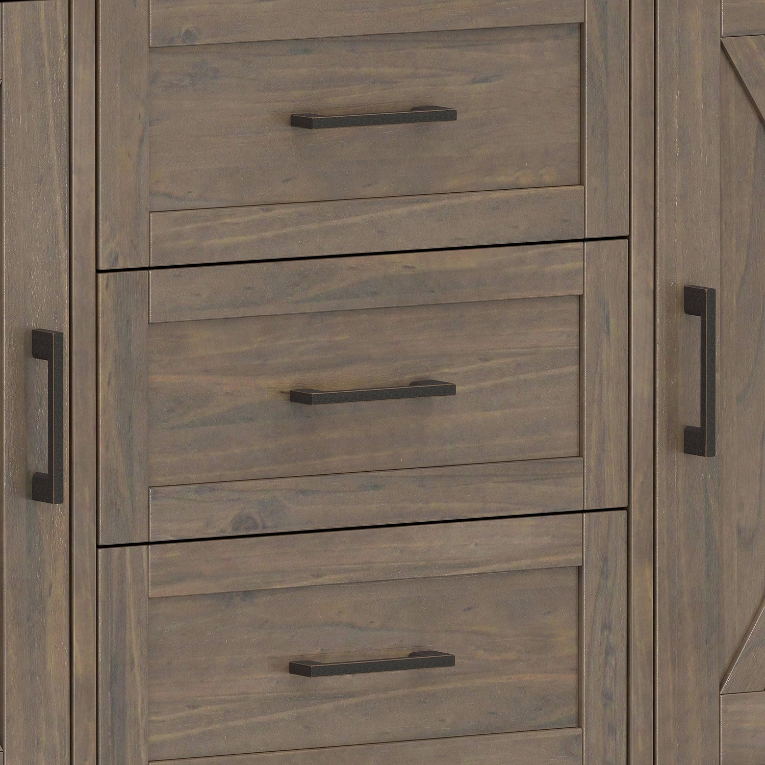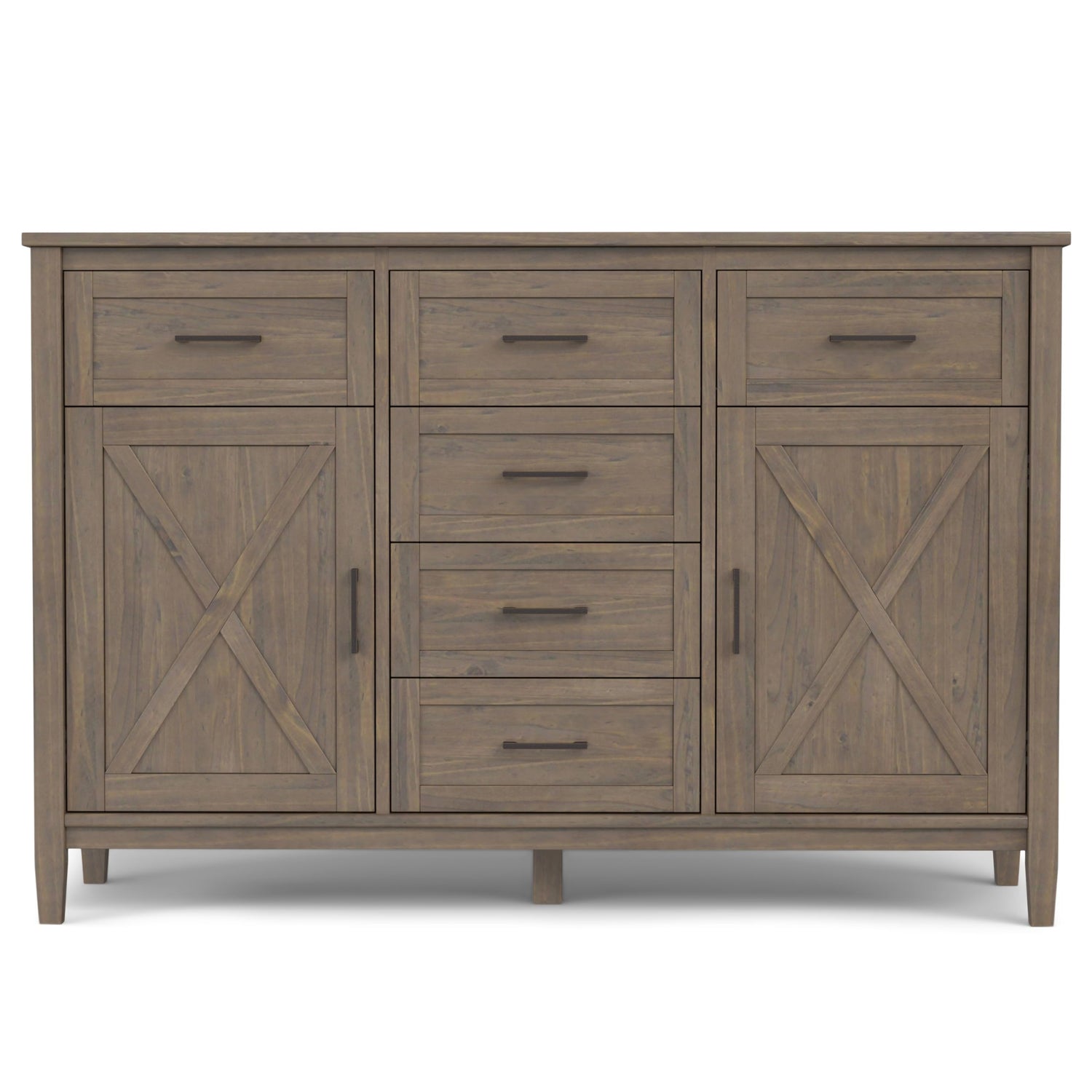 SIMPLIHOME Ela Buffet - 54 inch Wide Solid Wood 3-Door Sideboard Buffet in Smoky Brown, Transitional Storage Cabinet for Dining Room or Kitchen with Adjustable Shelves and Brushed Metal Hardware