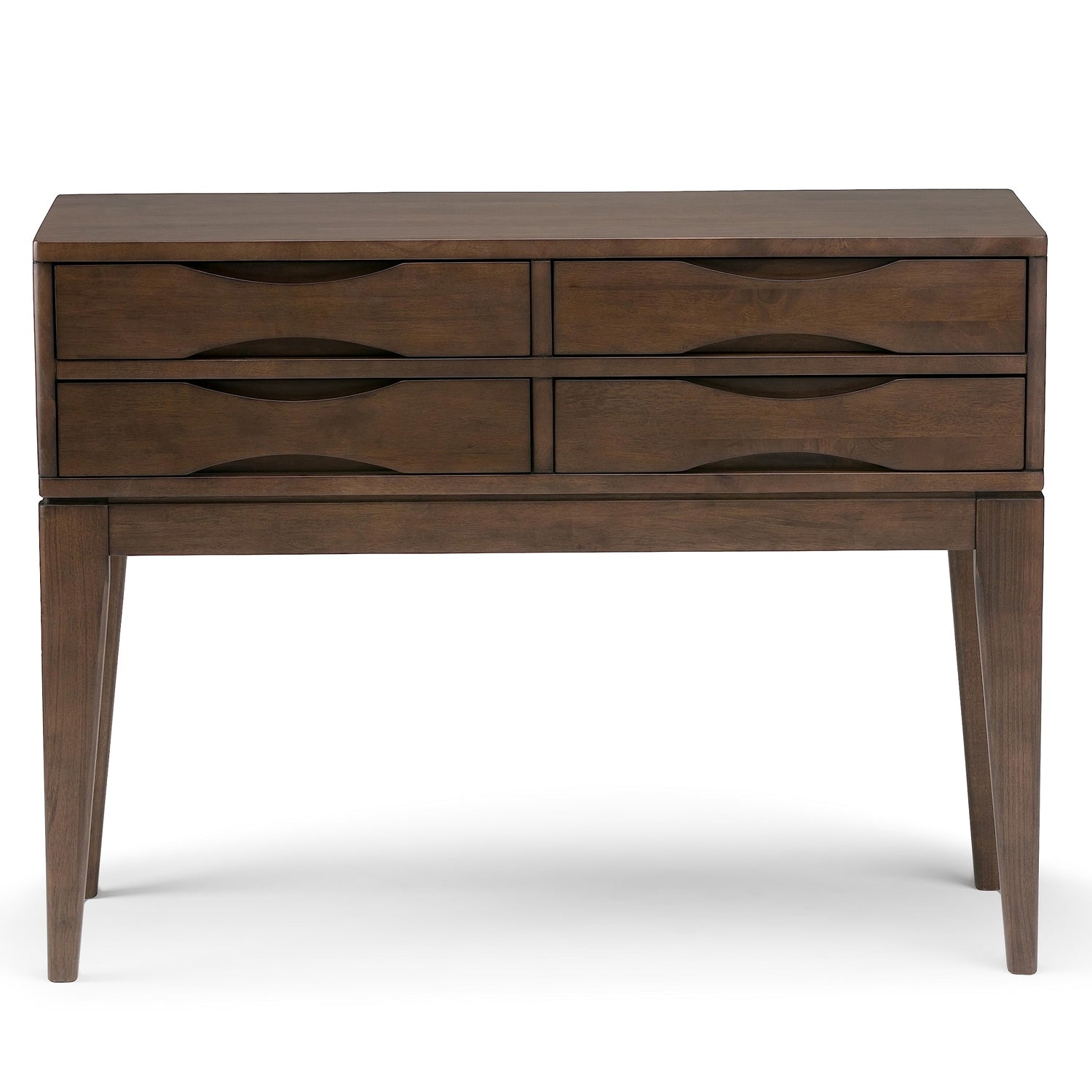 SIMPLIHOME Harper SOLID WOOD 40 inch Wide Mid Century Modern Hallway Console Sofa Entryway Table in Walnut Brown with Storage, 4 Drawers , for the Living Room, Entryway and Bedroom