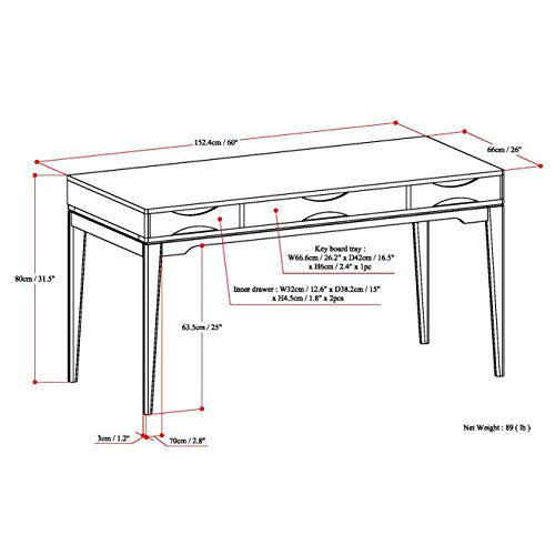 Details: Combine contemporary style and function with the Harper Desk. This desk is crafted of solid hardwood with a rich Walnut Brown finish. Generous in size, this desk offers a spacious top surface and includes a keyboard tray for added convenience. Two notched handle drawers provide plenty of space for small office supplies. Working from home office or den never felt so good.; Efforts are made to reproduce accurate colors, variations in color may occur due to computer monitor and photography; At Simpli Home we believe in creating excellent, high quality products made from the finest materials at an affordable price. Every one of our products come with a 1-year warranty and easy returns if you are not satisfied.