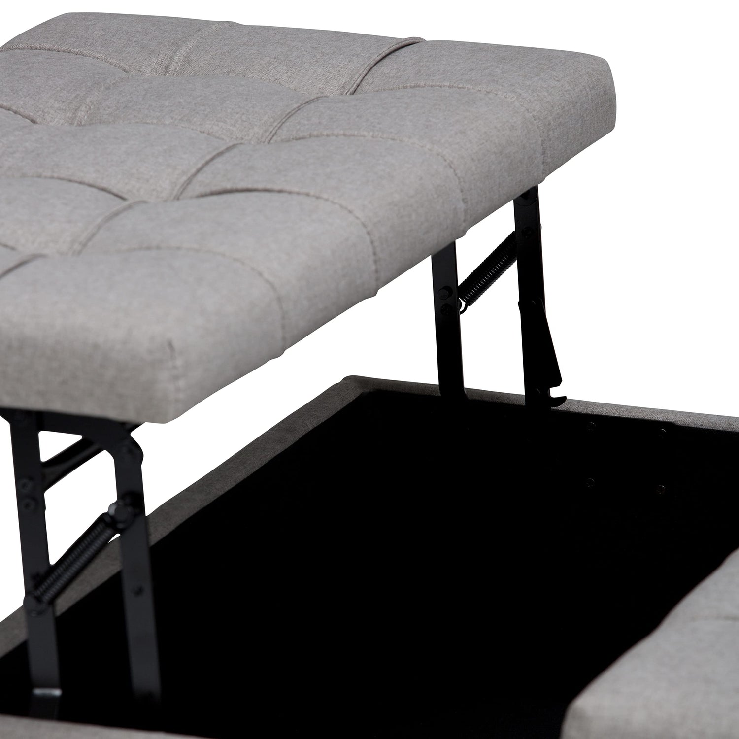 Details: Maximize the space in your living room or family room with the Harrison Coffee Table Storage Ottoman. The contemporary, yet functional design of the ottoman makes it a necessity for any home. The split top features stylish tufted details and one side lifts up - perfect for a lap top, tablet or dining. The large interior space is the perfect solution for your storage needs. The Harrison Coffee Table Storage Ottoman is available in a variety of colors and upholstered options. Child safety hinge to prevent lid slamming Simple assembly; just attach legs Efforts are made to reproduce accurate colors, variations in color may occur due to computer monitor and photography At Simpli Home we believe in creating excellent, high quality products made from the finest materials at an affordable price. Every one of our products come with a 1-year warranty and easy returns if you are not satisfied.