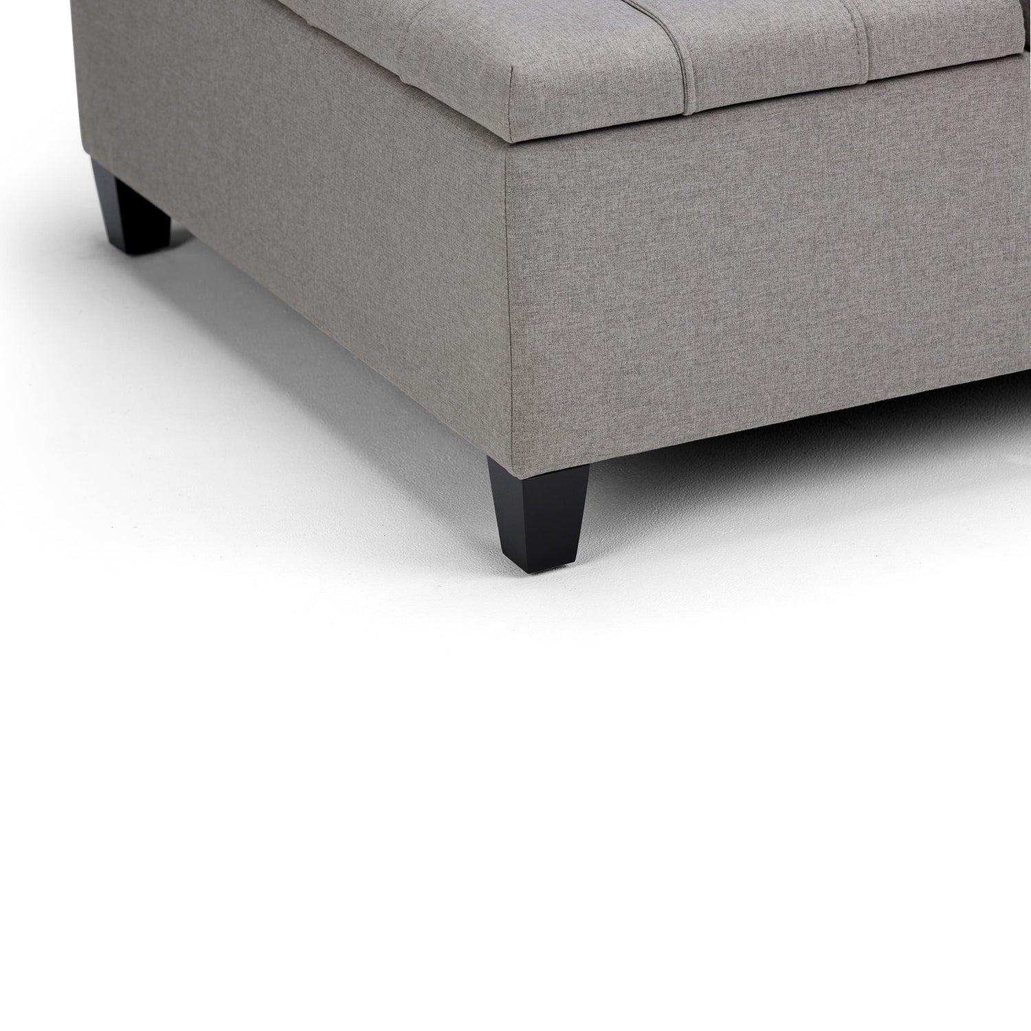 SIMPLIHOME Harrison 36 inch Wide Transitional Square Coffee Table Storage Ottoman in Dove Grey Linen Look Fabric, Assembled, for the Living Room and Bedroom