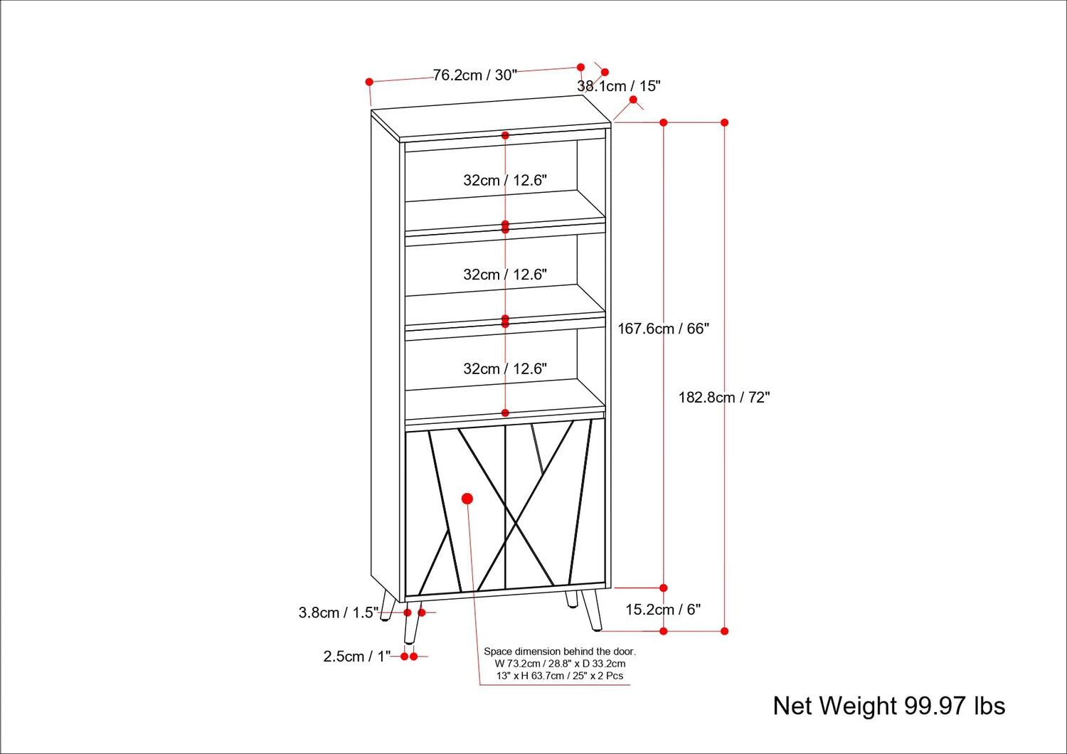 Introducing the contemporary Solid Mango Wood 30 Inch Bookshelf with Doors in Natural Finish by SIMPLIHOME. This exquisite piece perfectly marries functionality with stunning design, making it an ideal addition to any space.