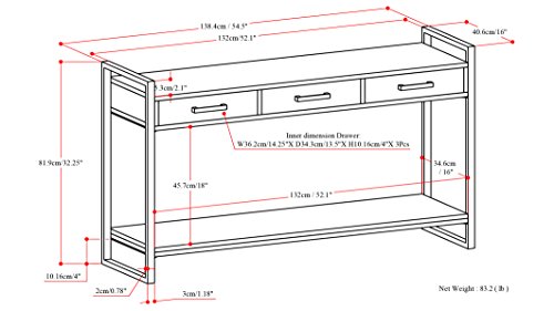 Details: Bring a functional aesthetic to any room in your home with The Riverside Console Table. This Console Table has a Rustic Industrial Style that will add a stylish touch to your home. Standing at 32” high and 54.5” wide, this piece offers a great amount of room for you to add your own personal touch. From placing family photos or somewhere to lay your keys when you get home, the Riverside Console Table is a chance for you to show your unique style. Modern Industrial design that adds a contemporary look to your home. . Assembly Required
