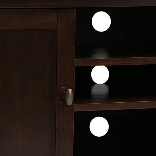 Details: Having just purchased your dream large flat screen TV - you need the perfect TV Stand to enhance your viewing pleasure. Look no further. The Warm Shaker TV Stand is perfectly sized for TVs up to 50 inches. The 29 inch height puts the TV at a level that is ideal for comfortable viewing. The Warm Shaker TV Stand has plenty of storage and space for all your media and gaming devices. It has a large centrally located open area with two adjustable shelves and two bottom drawers. The two side storage cabinets open to one adjustable shelf. The unit features cord management cut-outs for easy installation of TV and media components. The unit includes cord management cut-outs for easy installation of TV and media components. Style features shaker style doors, Antique Brass knobs, square tapered legs and square edged table top. Efforts are made to reproduce accurate colors, variations in color may occur due to computer monitor and photography. At Simpli Home we believe in creating excellent, high quality products made from the finest materials at an affordable price. Every one of our products come with a 1-year warranty and easy returns if you are not satisfied.