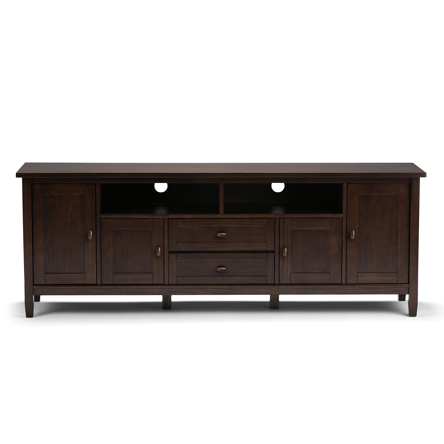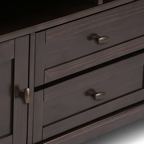 SIMPLIHOME Warm Shaker SOLID WOOD Universal TV Media Stand, 72 Inch Wide, Farmhouse Rustic, Living Room Entertainment Center, for Flat Screen TVs up to 80 Inch in Tobacco Brown