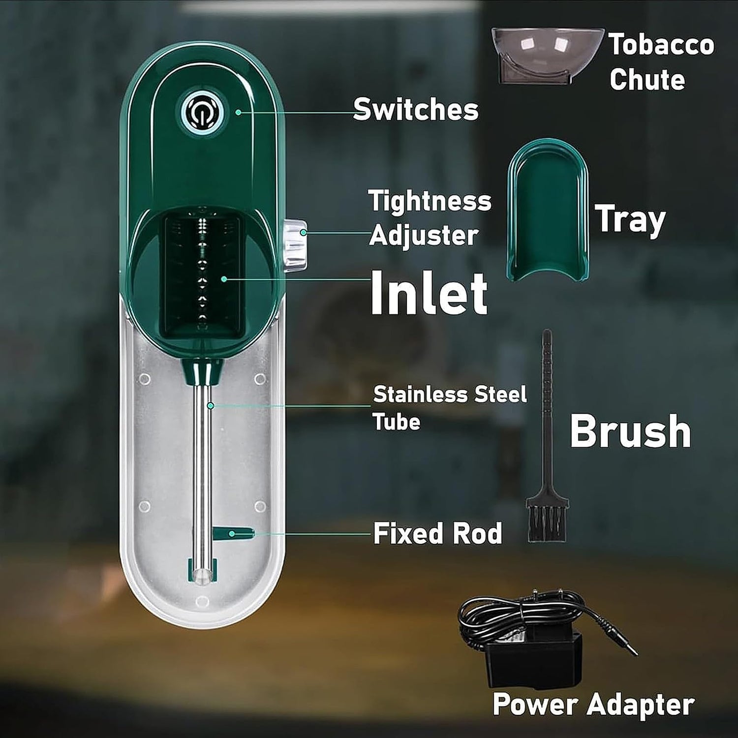 - Durable Construction: Made from high-quality stainless steel and ABS materials, our roller machine is built to last. Package includes 1x Automatic Cigarette Rollers machine, 1x Power Adapter, 1x Cleaning Brush.