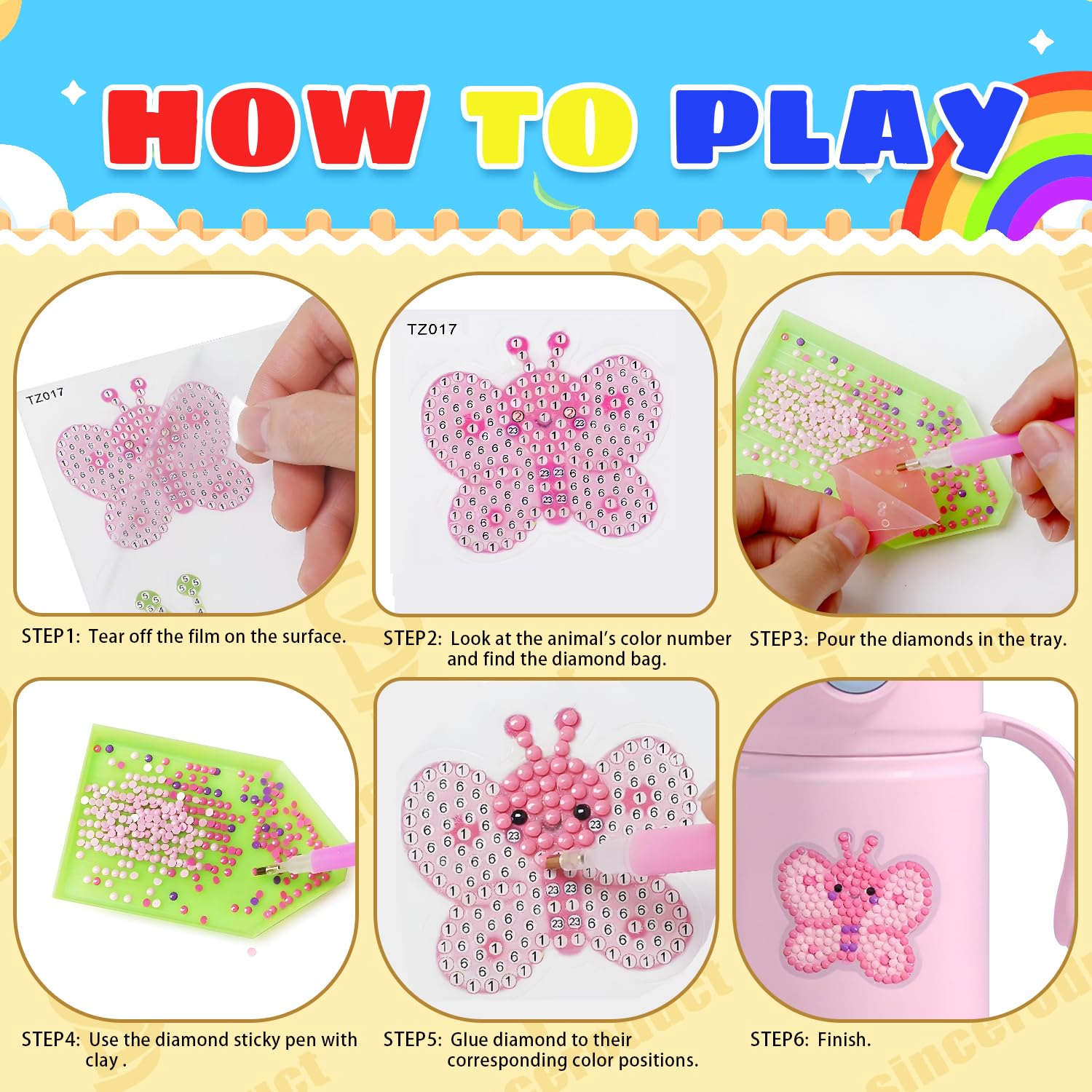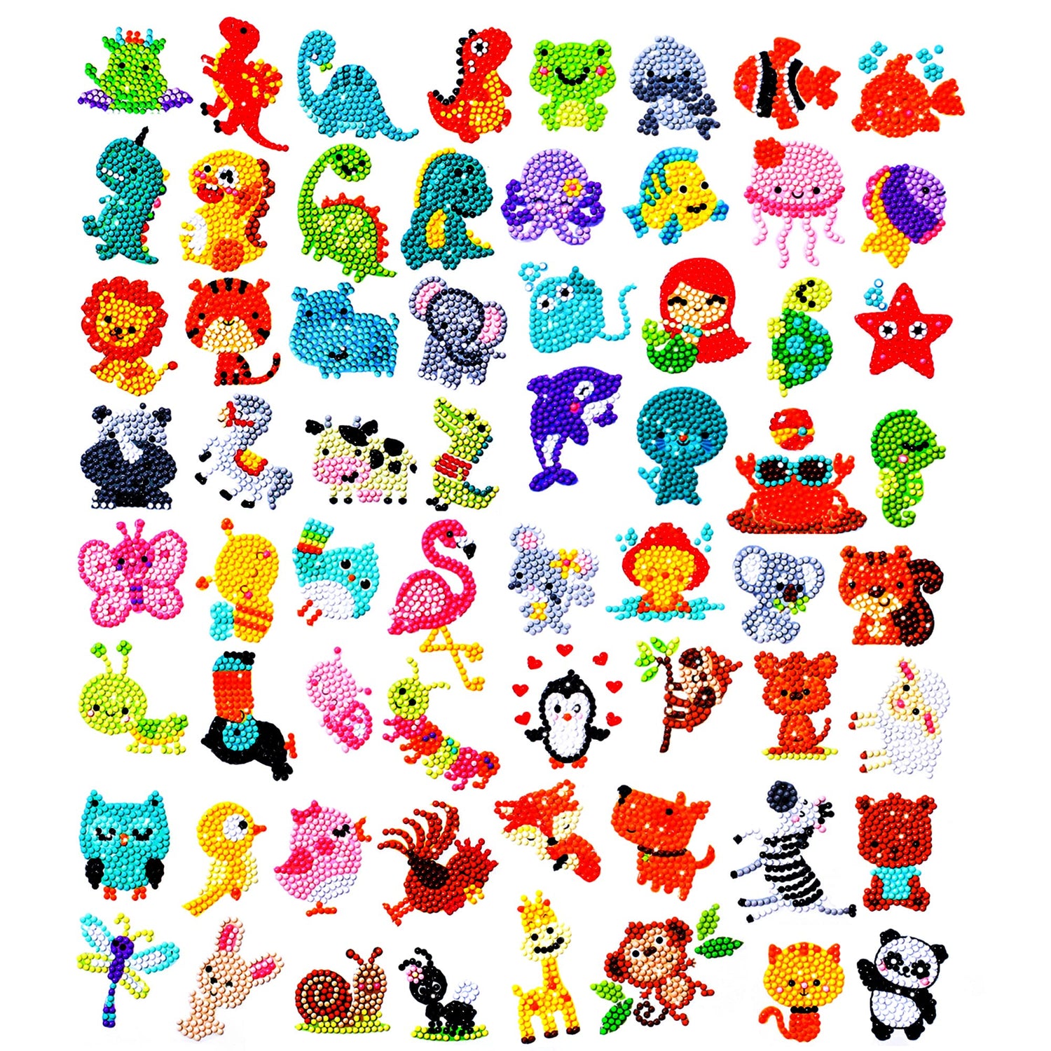 sinceroduct Sparkling 5D Diamond Sticker Kit for All Ages, 64 PCS Cute Animals & Dinosaurs, Eco-Friendly, Reusable & Easy DIY Art for Creative Fun and Learning
