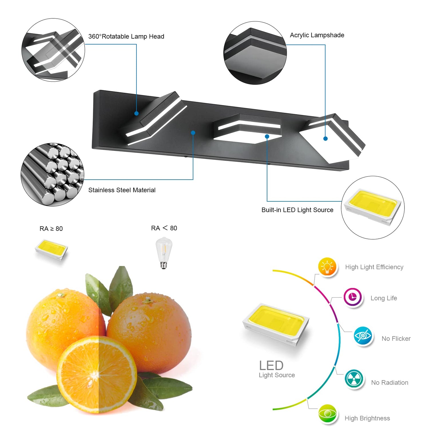 - 【Rotatable Lamp Design】360° rotatable joint, can easily turn individual lights to different position if desired. The brightness is perfect for putting on makeup.