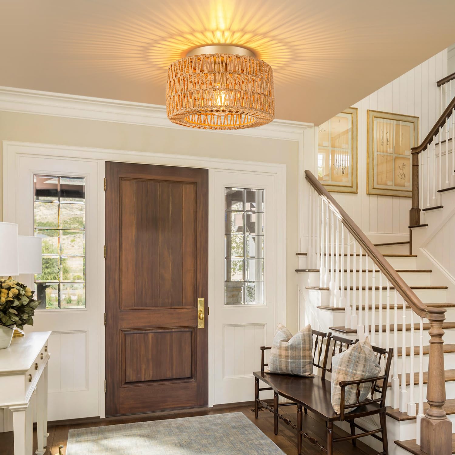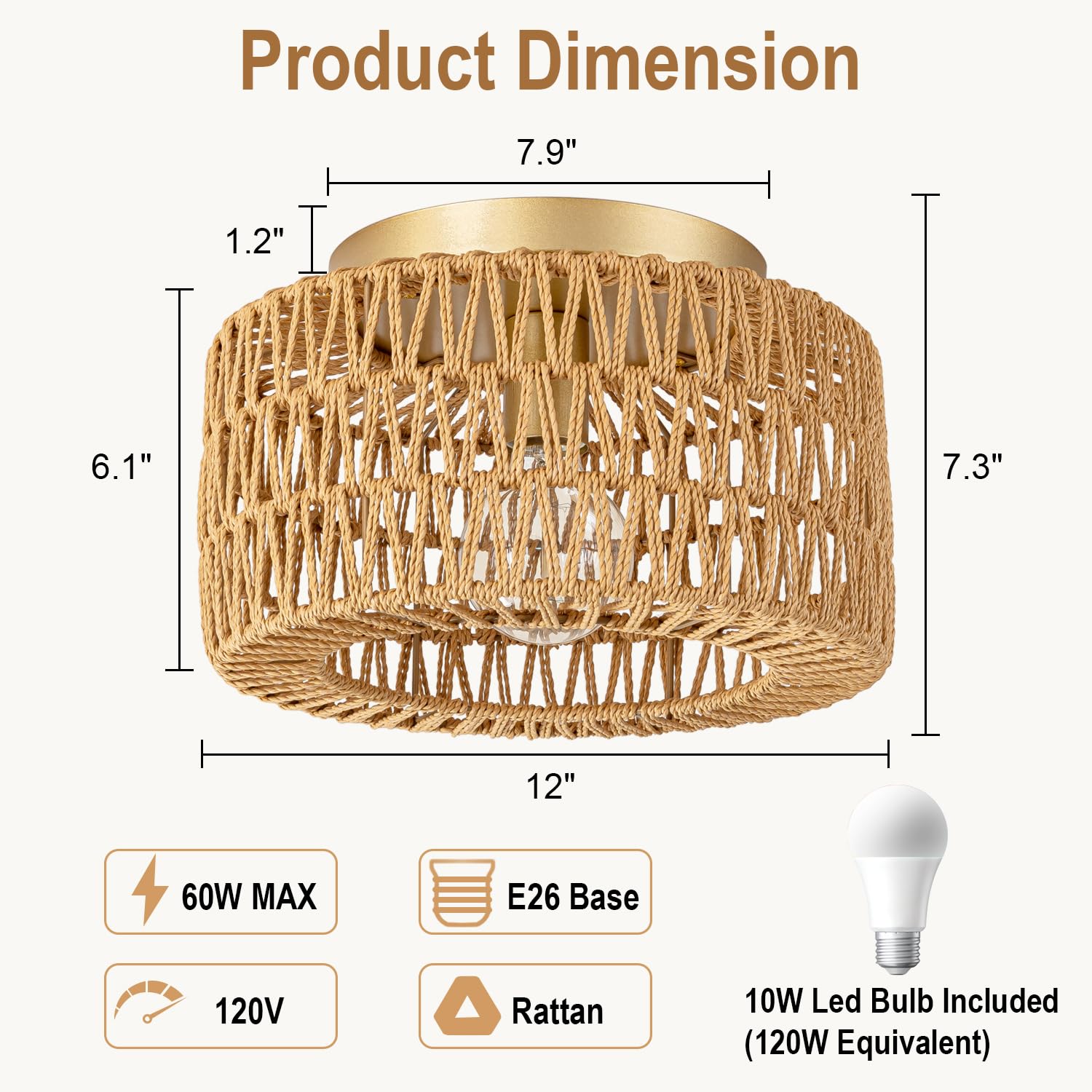 - 【Easy Installation & Convenient Usage】Boho light fixtures package includes all mounting hardware. The wicker light fixture installation is really simple with step-by-step instructions, perfect for any do-it-yourself ceiling lighting project.
