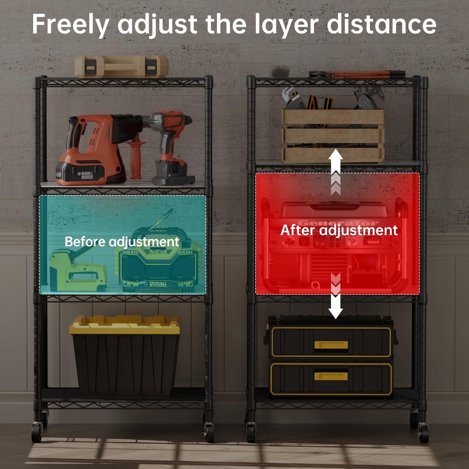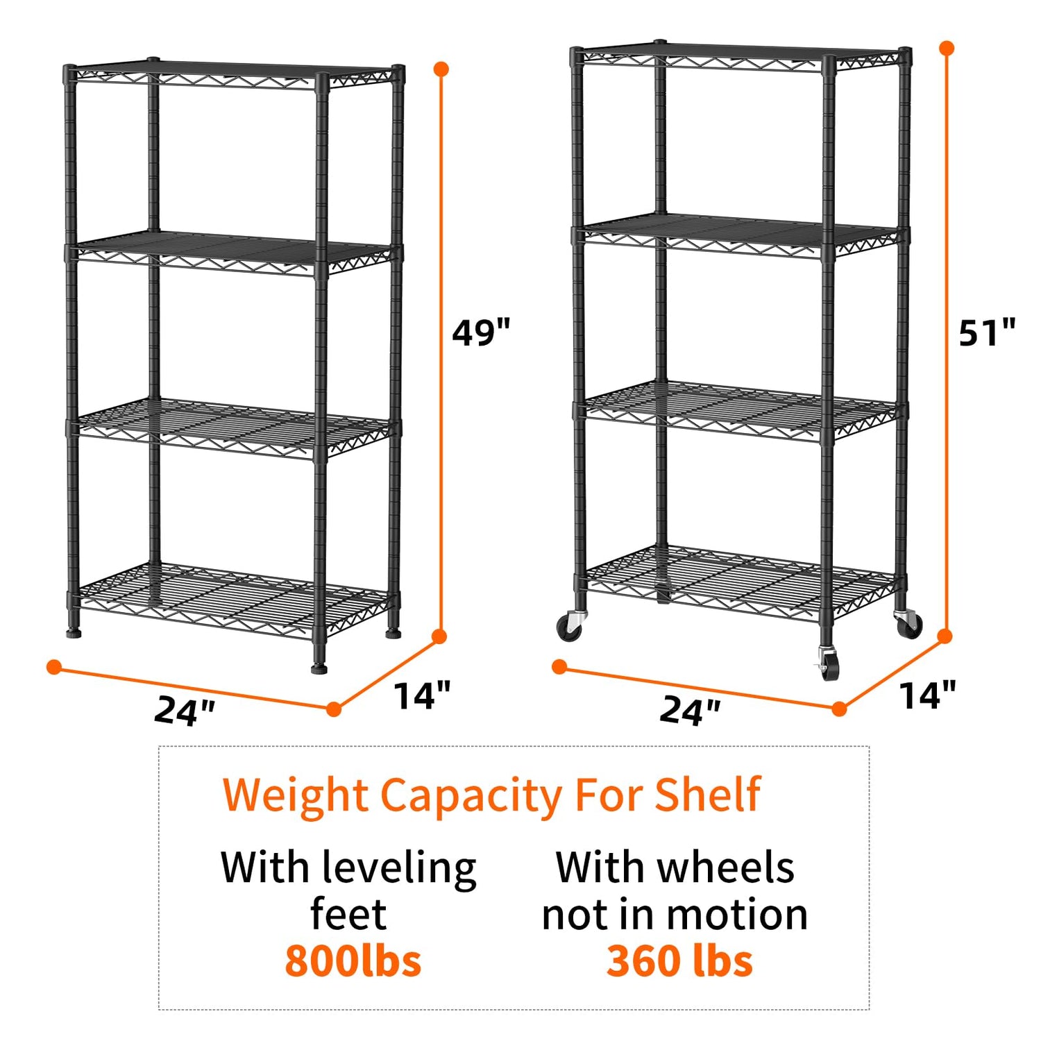 - Convenient Home Storage: Metal wire shelves with adjustable spacing (14”D X 24”W X 49”H) make perfect for narrow spaces or room corners such as kitchens, bathrooms, laundry rooms, balconies, garages, entries, or offices.