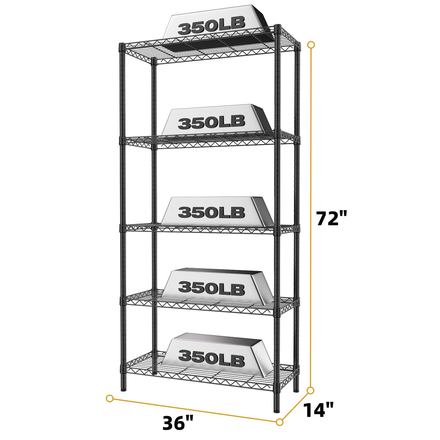 SINGAYE 5-Shelf Adjustable, Heavy Duty Storage Shelving Unit (350 lbs per Shelf), Steel Organizer Wire Rack Storage Shelf for Garage Office Pantry Ktichen, Black (36" W x 14" D x 72" H)