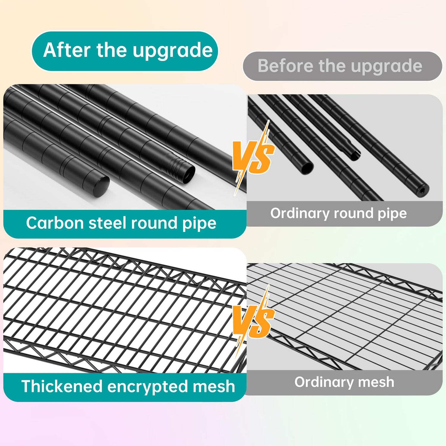 - Adjustable Height:Adjustable heavy duty 5 tier storage shelf,wire shelves adjustable in 1-inch increments