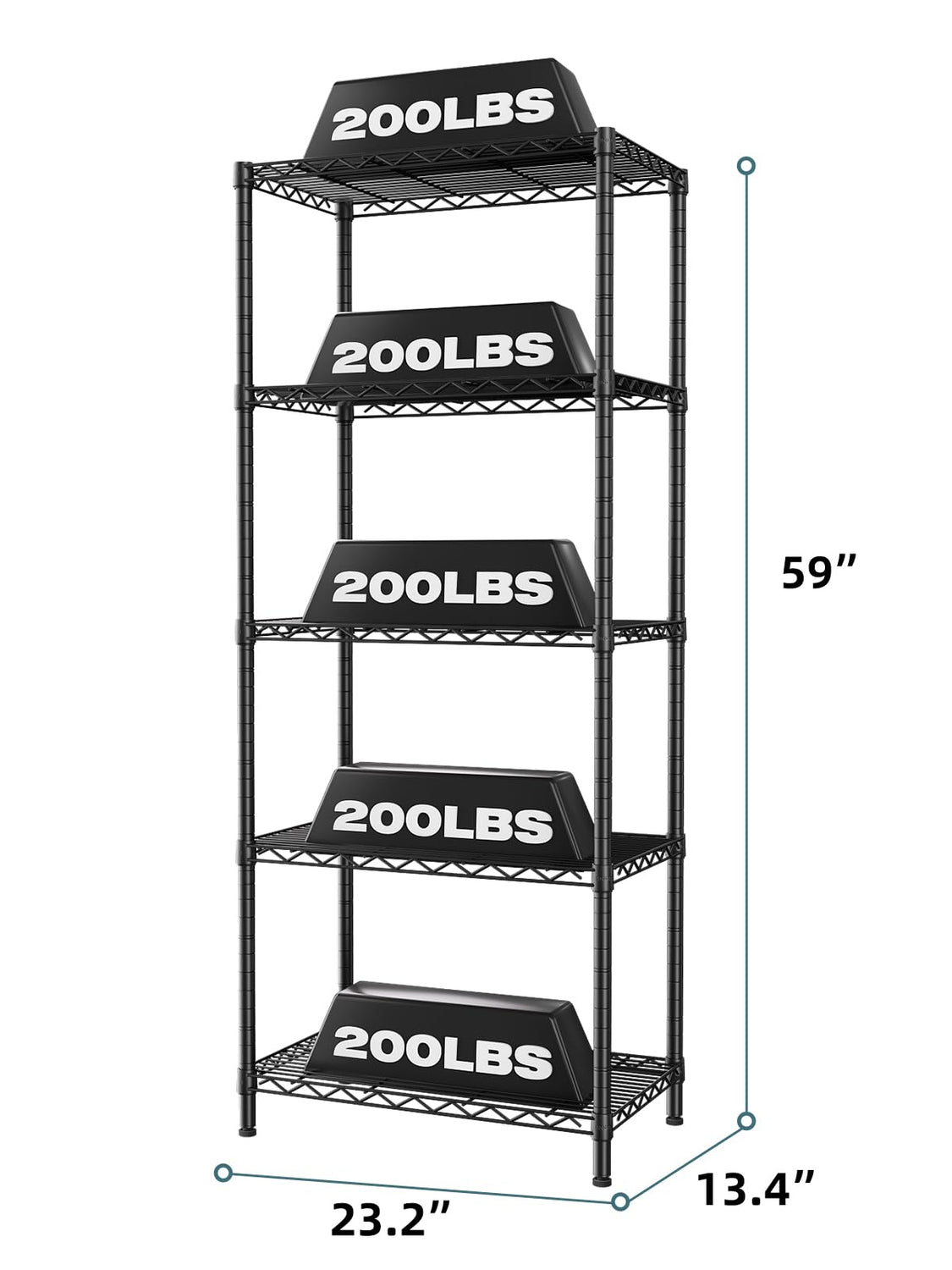 SINGAYE 5 Tier Storage Rack Wire Shelving Unit Storage Shelves Metal for Kitchen Laundry Pantry Closet 1000 Lbs Capacity 23.6" L x 14" W x 59.1" H Black