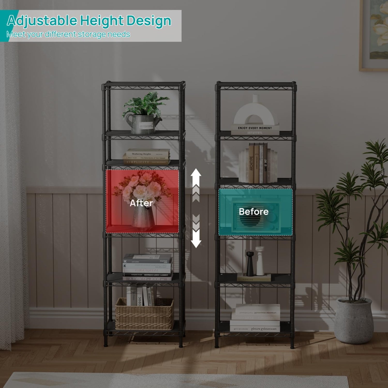SINGAYE 6 Shelves Bathroom Organizers and Storage Shelf Wire Closet Metal Pantry Kitchen Small Garage Shelving Unit Laundry Room Organization Home Tall Rack Balck 10" D x 16" W x 60”H