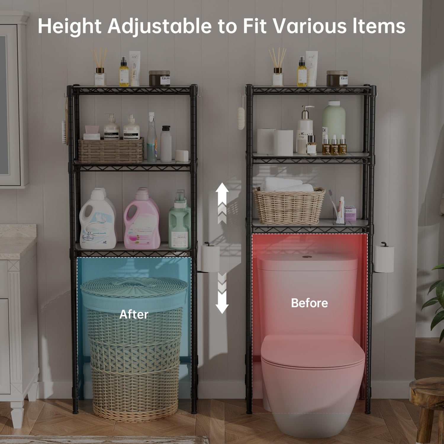 - [Adjustable Layer Spacing] Over the toilet storage each wire mesh layer is adjustable to fit your items. The wire mesh is designed to be moisture-resistant, antiaccumulation, and rust-proof.