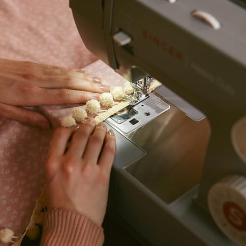 Accessories Included: Six presser feet (All-Purpose Foot, Zipper Foot, Button Sewing Foot, One-Step Buttonhole Foot, Even Feed/Walking Foot, Non-Stick Foot), Clearance Plate, Seam Ripper/Lint Brush, Spool Caps, Screwdriver, Edge/ Quilting Guide, Extra SINGER® Class 15 Bobbins (transparent), Pack of Needles, Heavy Duty Needles, Auxiliary Spool Pin and Felt Washer.