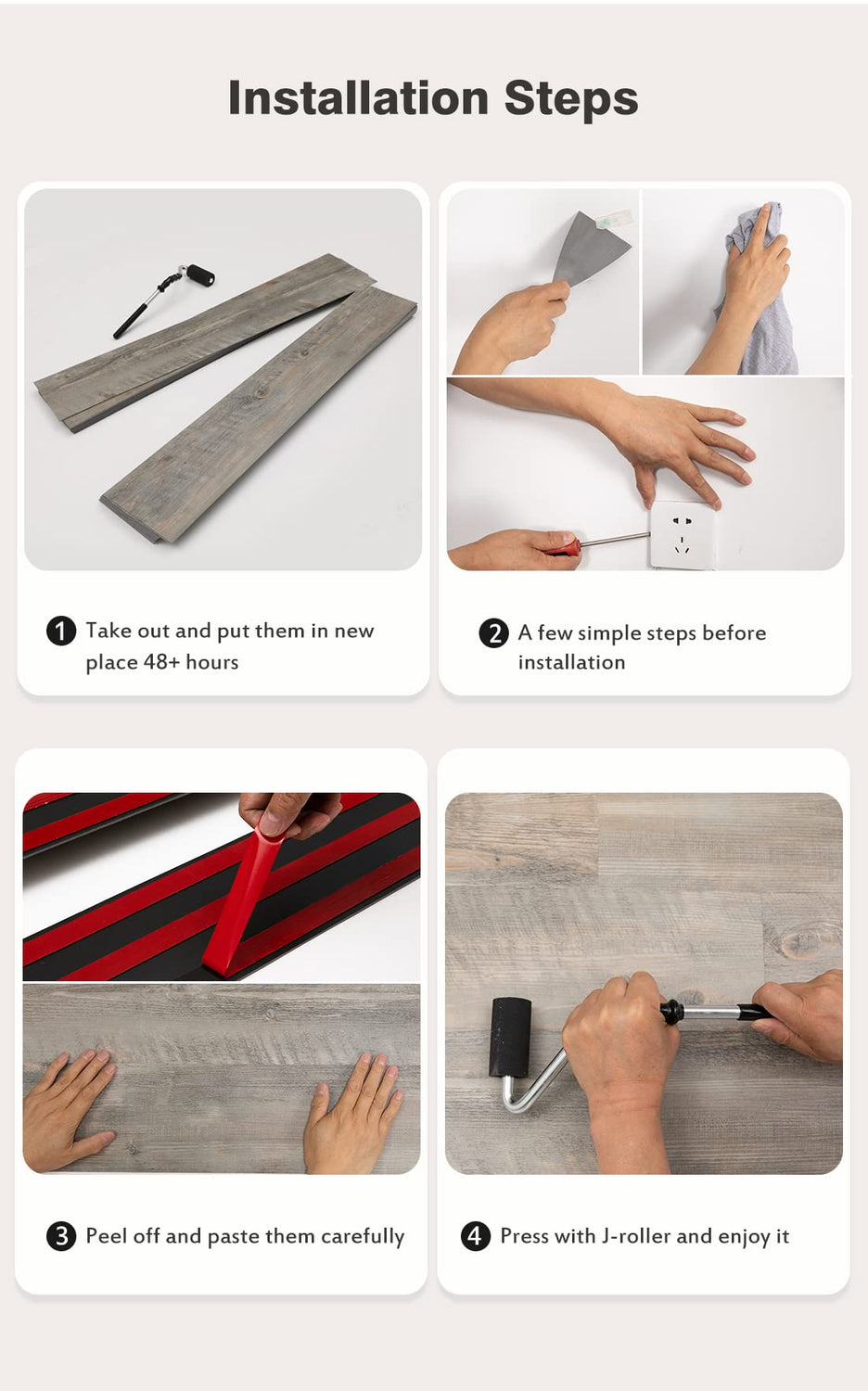 - INSTRUCTION:the wall applied to have to be clean and dry surface,the orange peel texture wall can not be sticked directly,sanding the texture, apply a coat of primer, allow at least a week curing,or using extra glue like liquid nail as reinforcement