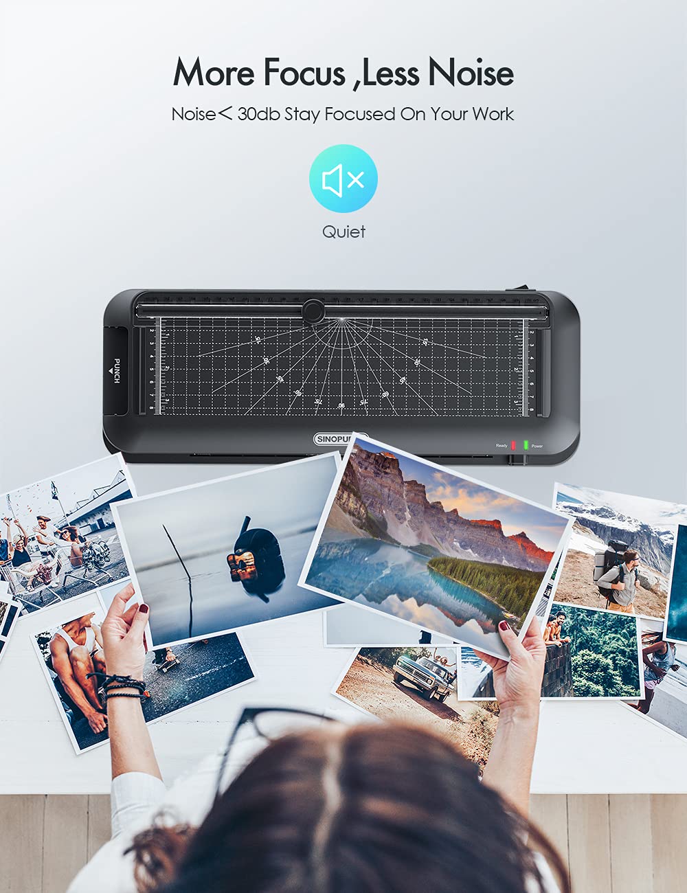 SINOPUREN 9-Inch Thermal Laminator Machine, 3-in-1 Laminator with Built-in Paper Trimmer, Hole Punch & Corner Rounder, 10 Laminating Pouches, Fast 3-Min Warm-Up, Jam-Free for Home, Office, School