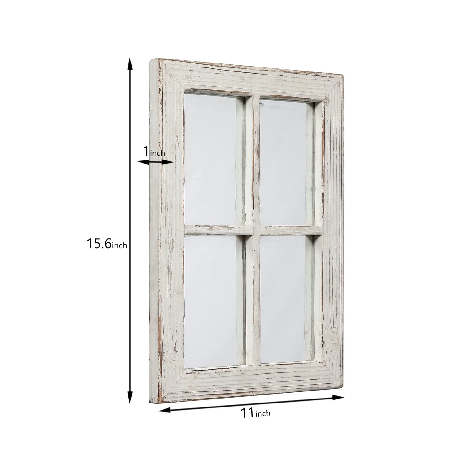 - [RUSTIC WINDOWPANE MIRROR 11" x 16"] Sizs: 11" x 1" x 15.6". Distressed farmhouse white mirrors create a beautiful rustic effect in the room. With distressed finish, 1 inch thick frame which truly stands out and a simple, yet ultra-elegant design, this wooden frame hanging mirror is easy to mix and match with any décor!