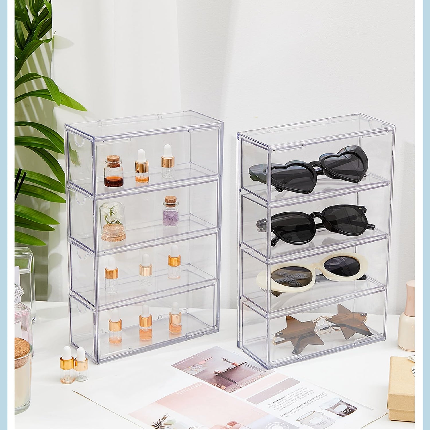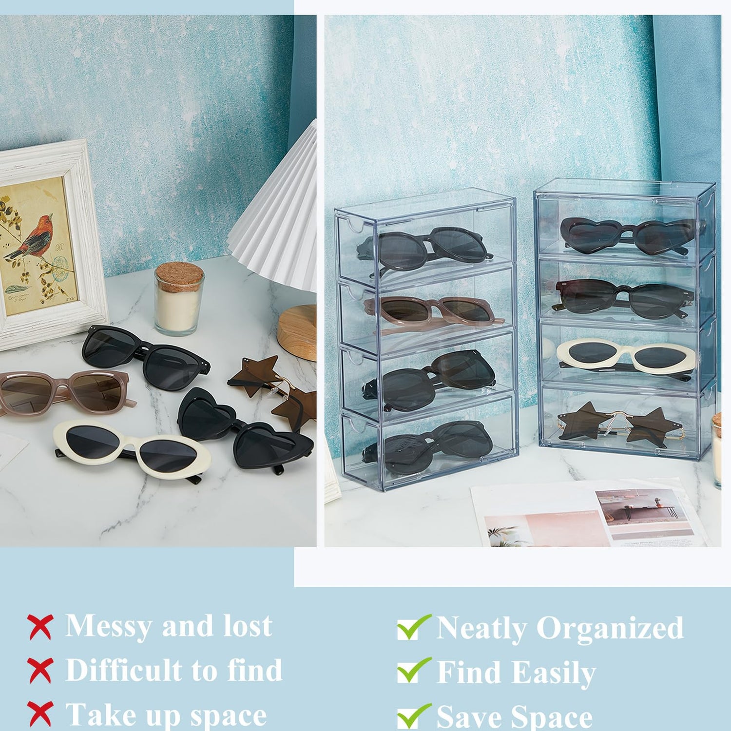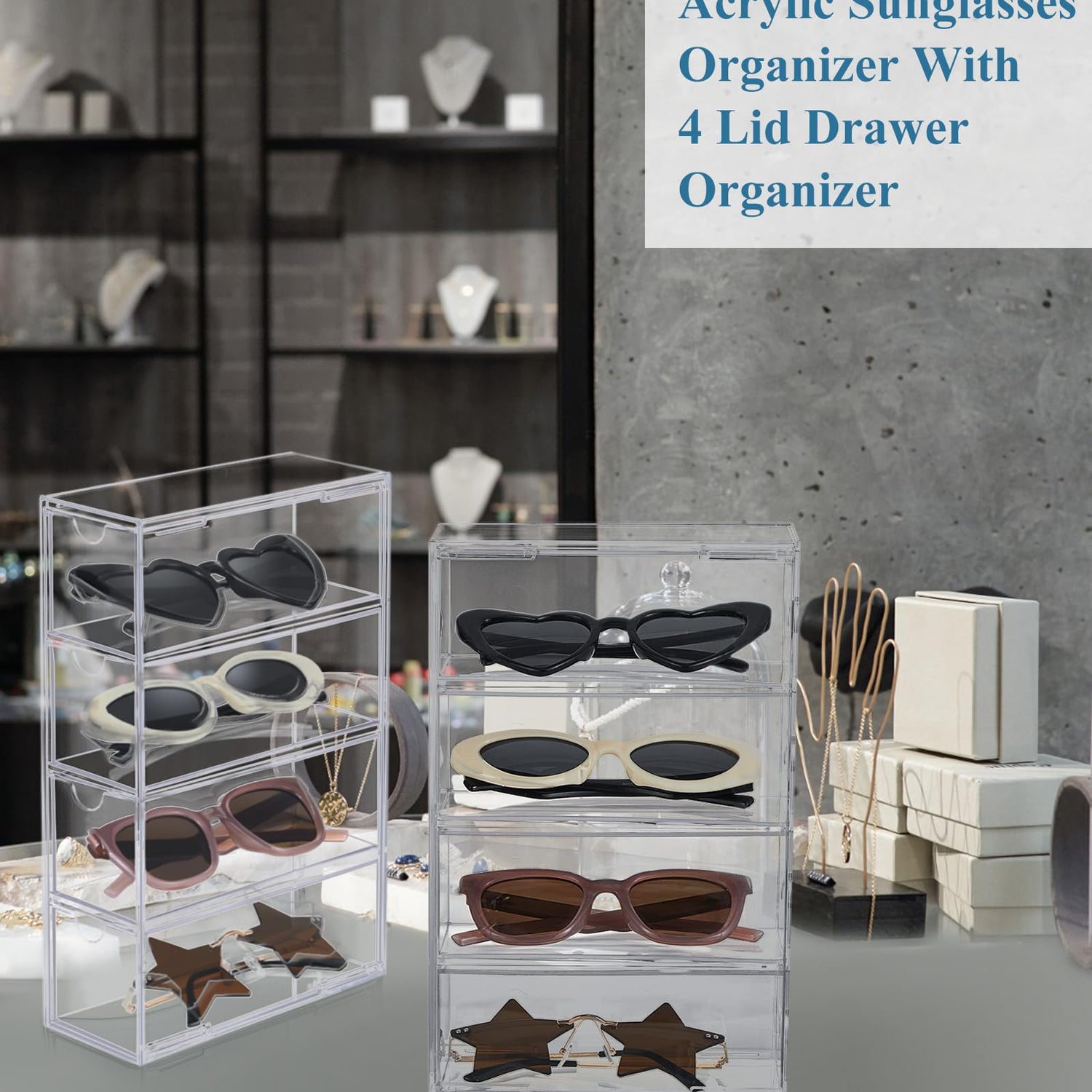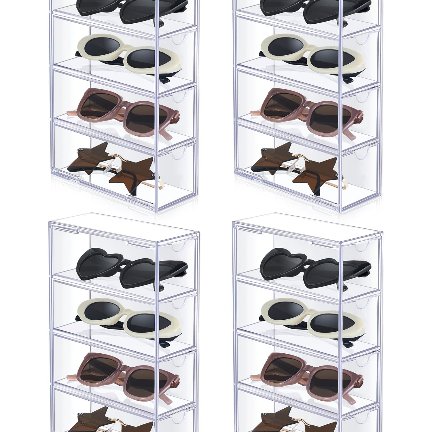 Sintuff 4 Pack Acrylic Sunglass Organizer with 4 Drawers Clear Eyewear Storage Display Case Eyewear Organizer for Women Eyeglass Holder Multiple Pair for Glasses Jewelry Watch Storage Tray