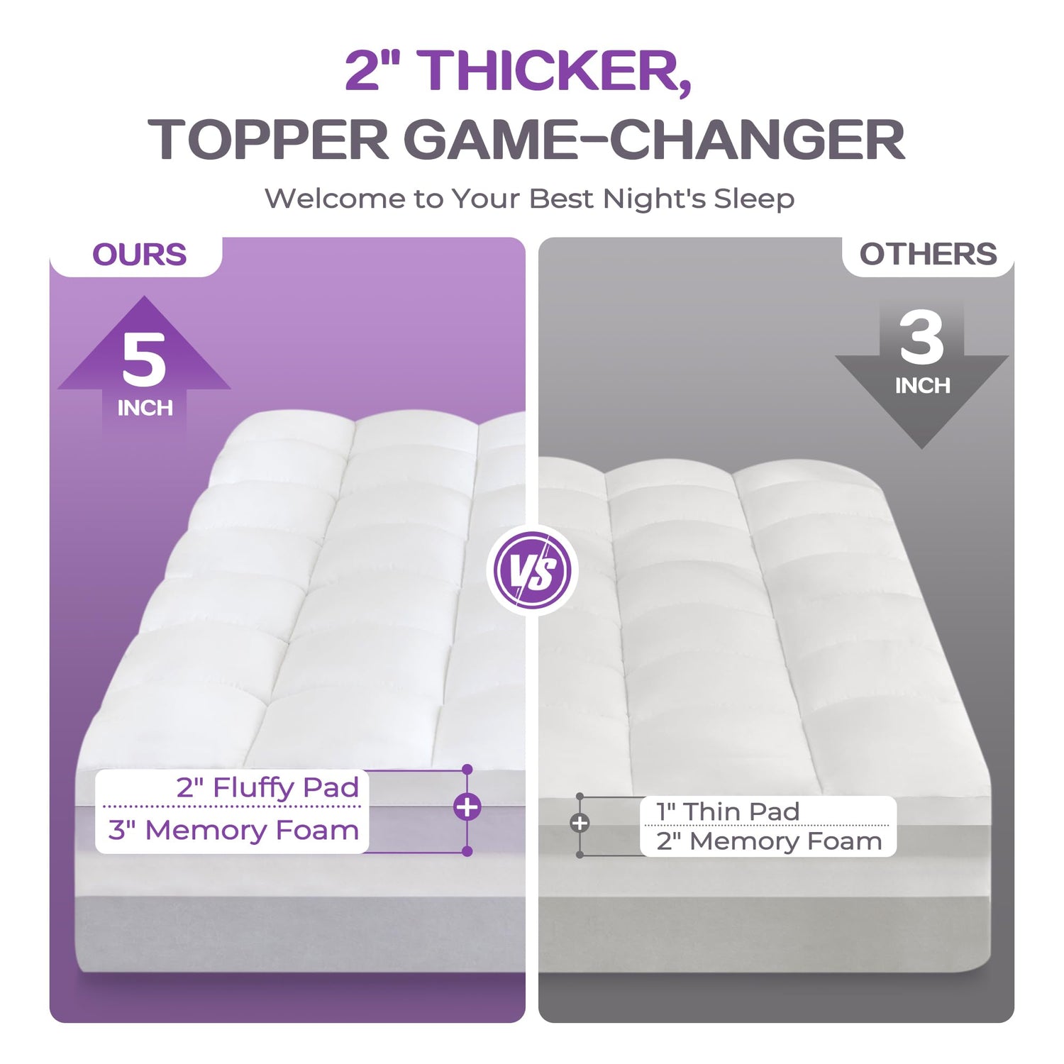 - DUAL-LAYER COMFORT & SUPPORT - Our mattress topper features a delightful combination of a 3-inch cooling gel memory foam and a plush 2-inch microfiber cover, generously filled with 1450 GSM soft down alternative. This thoughtful 5-inch design provides you with exceptional softness and ergonomic support, ensuring your spine is perfectly aligned