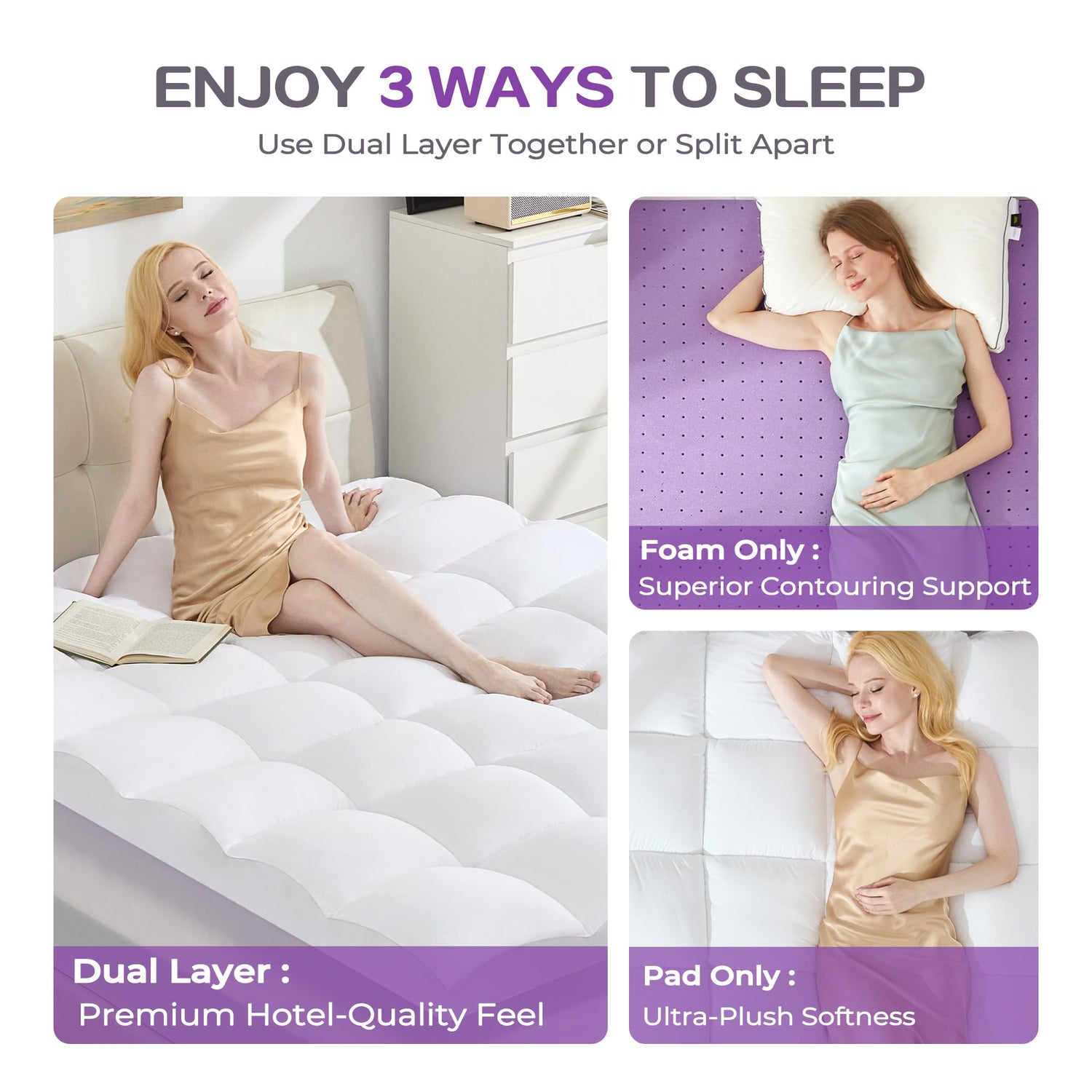 - MULTIPLE CHOICE UTILIZATION - You can combine the pad and foam or use them separately at your discretion. The memory foam is designed to contour seamlessly to your body’s curves, while the soft pad imparts a cloud-like sensation that envelops you in comfort. Alternatively, you can enjoy the entire ensemble for a 5-inch thickness offering mattress-level comfort.