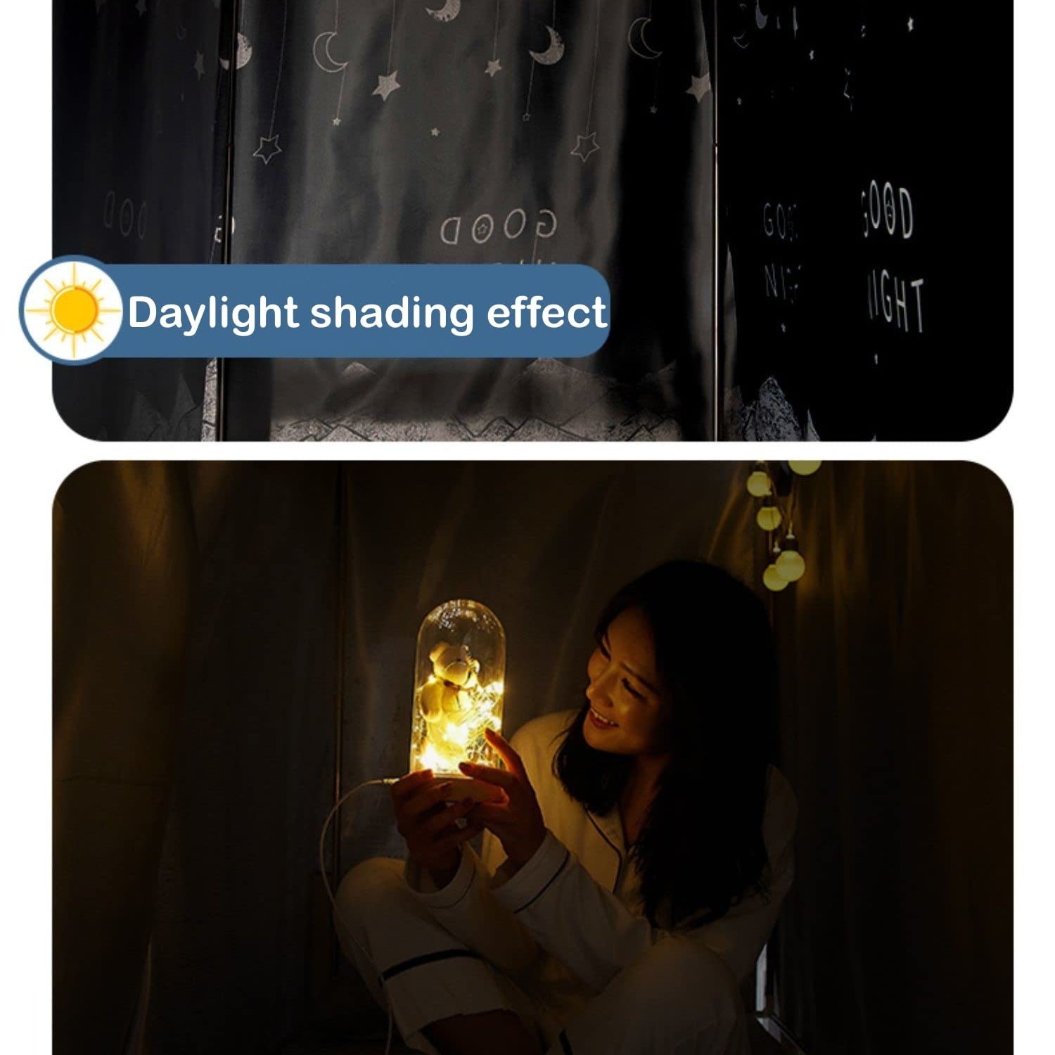 - STRONG SHADING BED CURTAINS: Thick material, good shading effect, perfectly blocks 50% of the light, and the black style can even block 90% of the light. It's an excellent black out curtain for those who has poor sleep quality or those who work at night and need good sleep at day time.