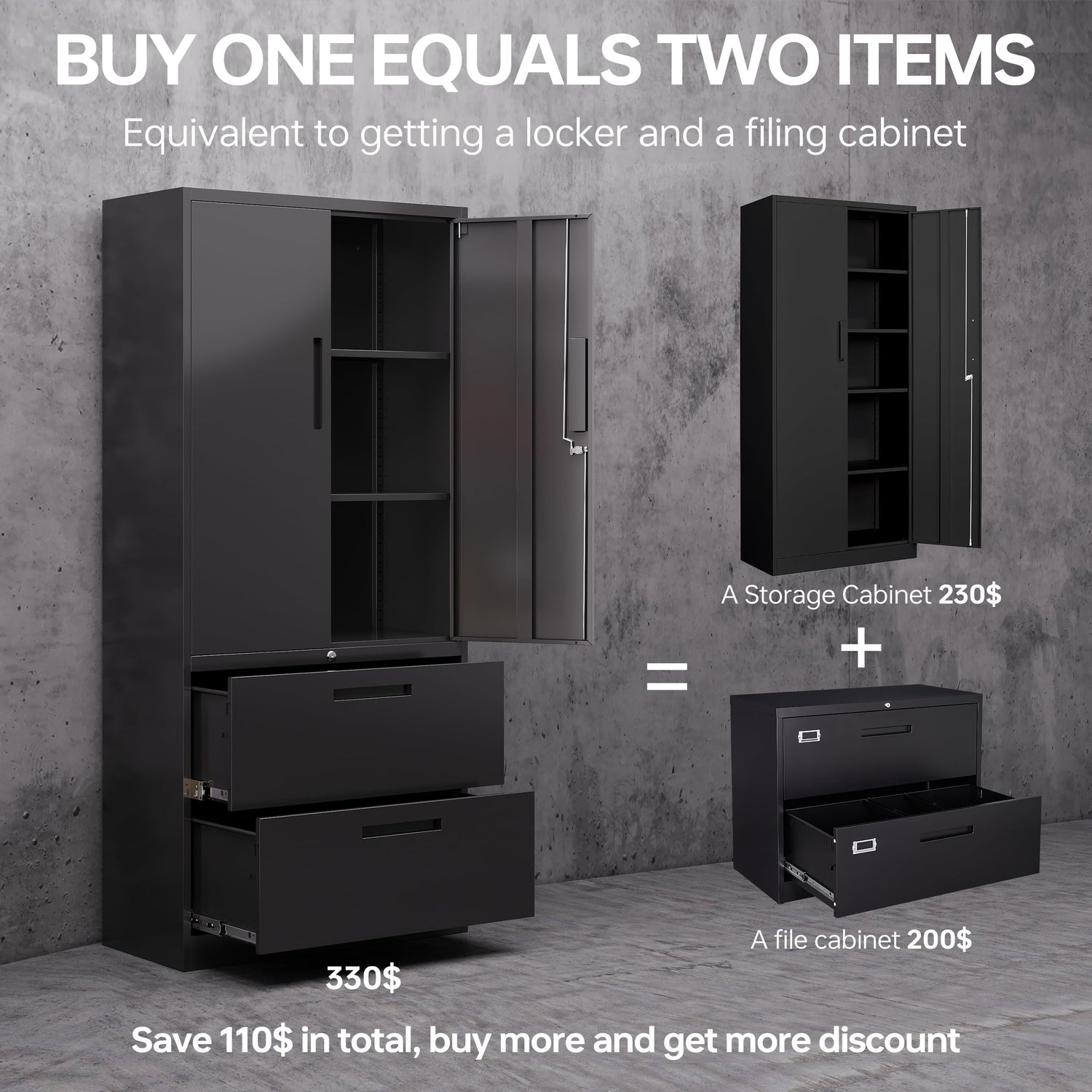 - 【Lockable Storage Cabinets】Our file cabinet come with locks and 2 adjustable shelf for a great fit and convenience. high end unlocks to protect valuables including keys. Whatever your storage needs, you can create a unique storage space that suits them