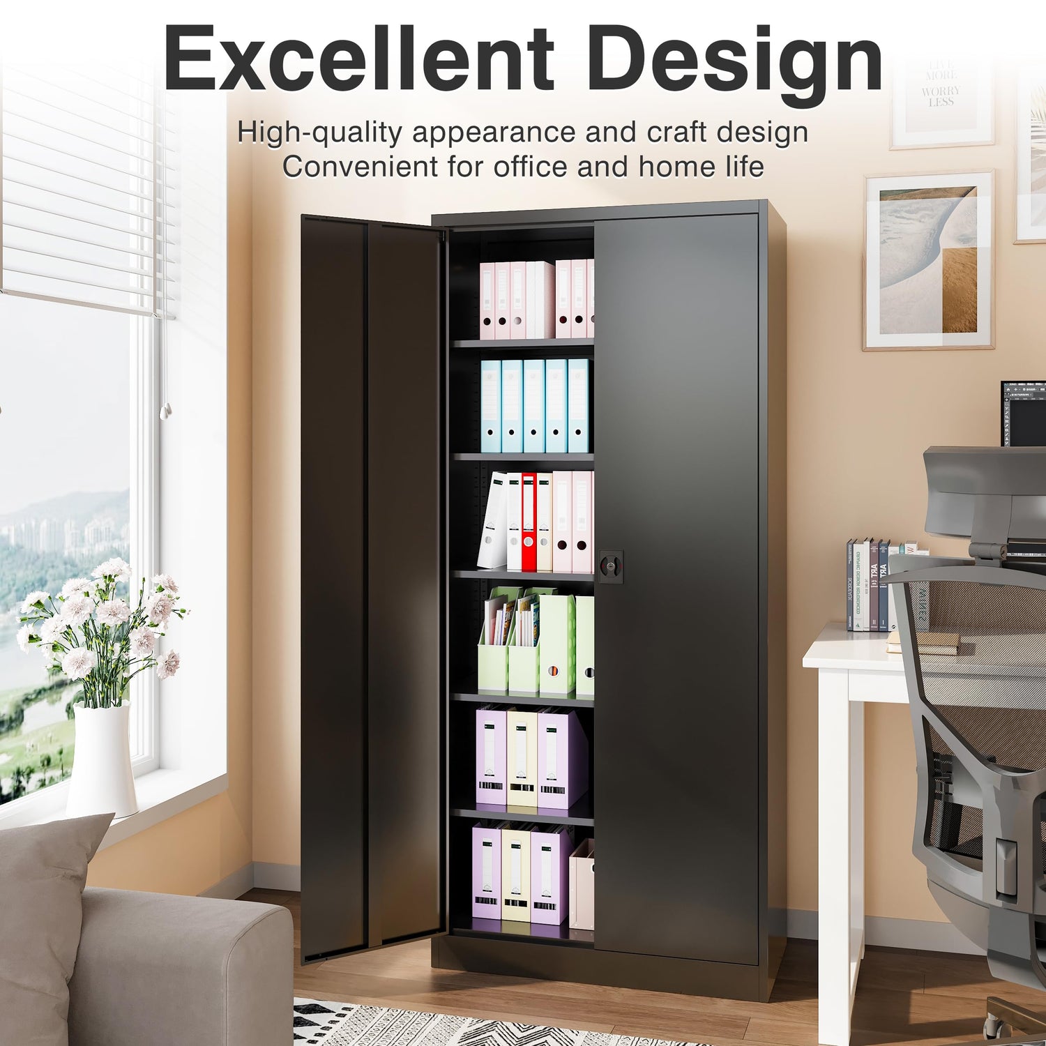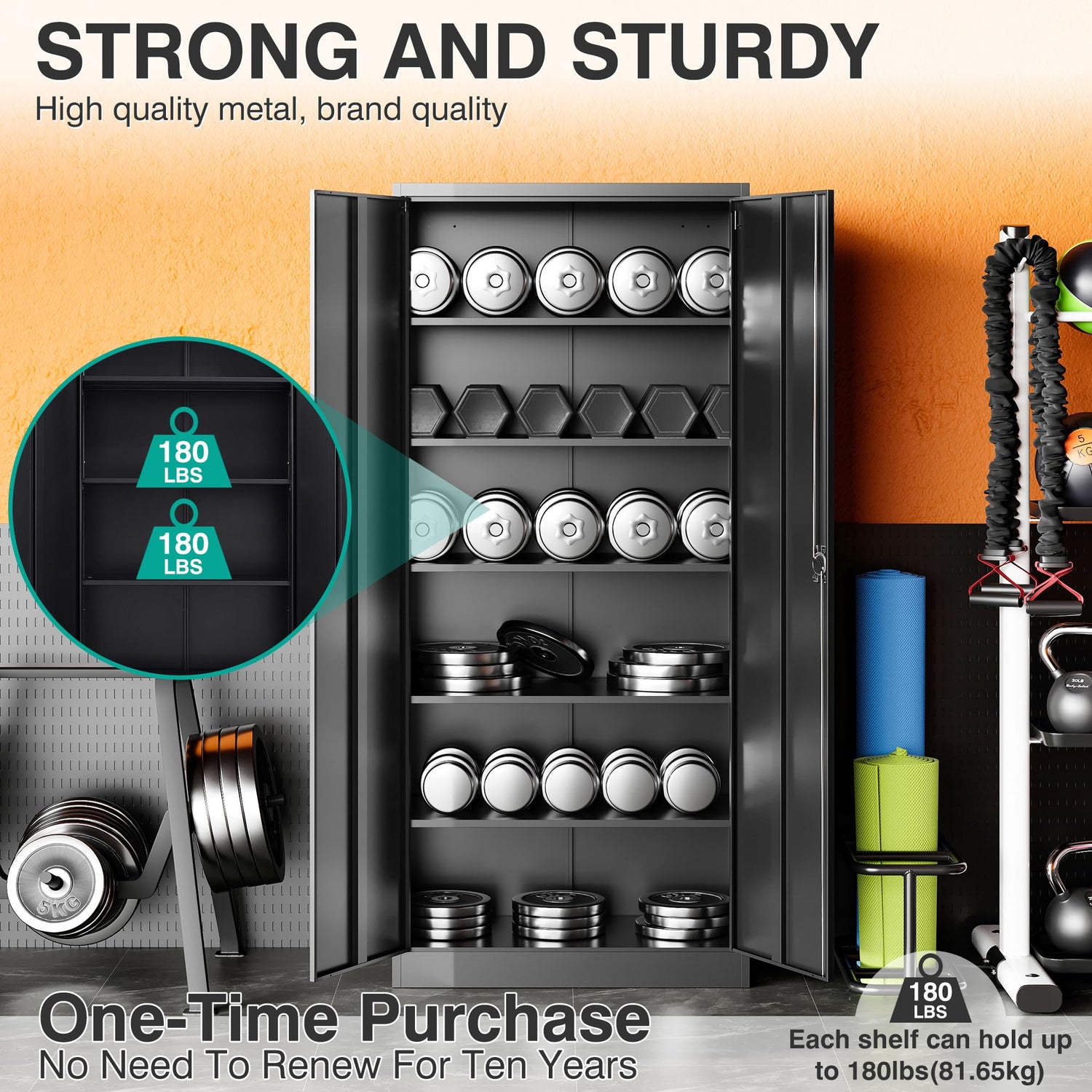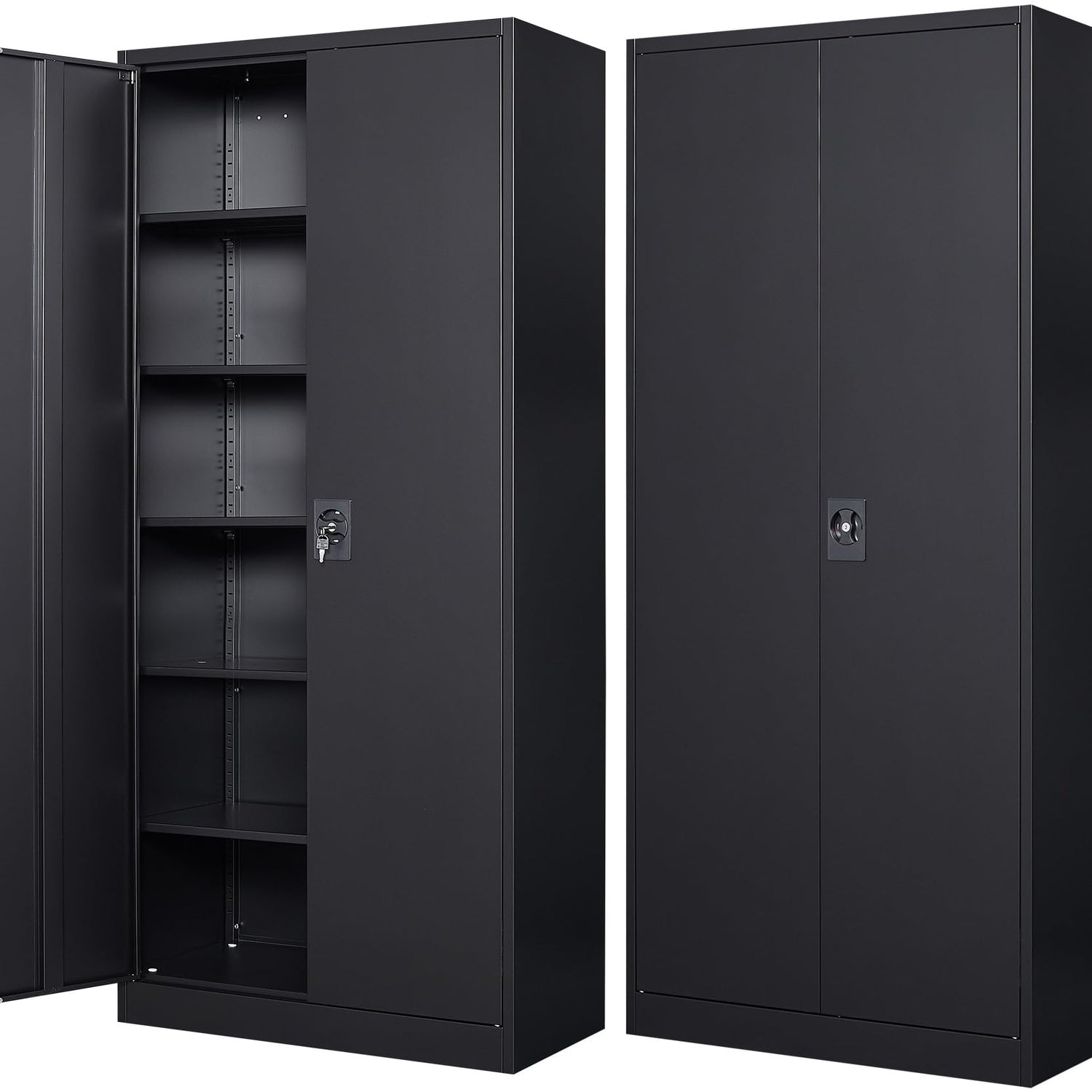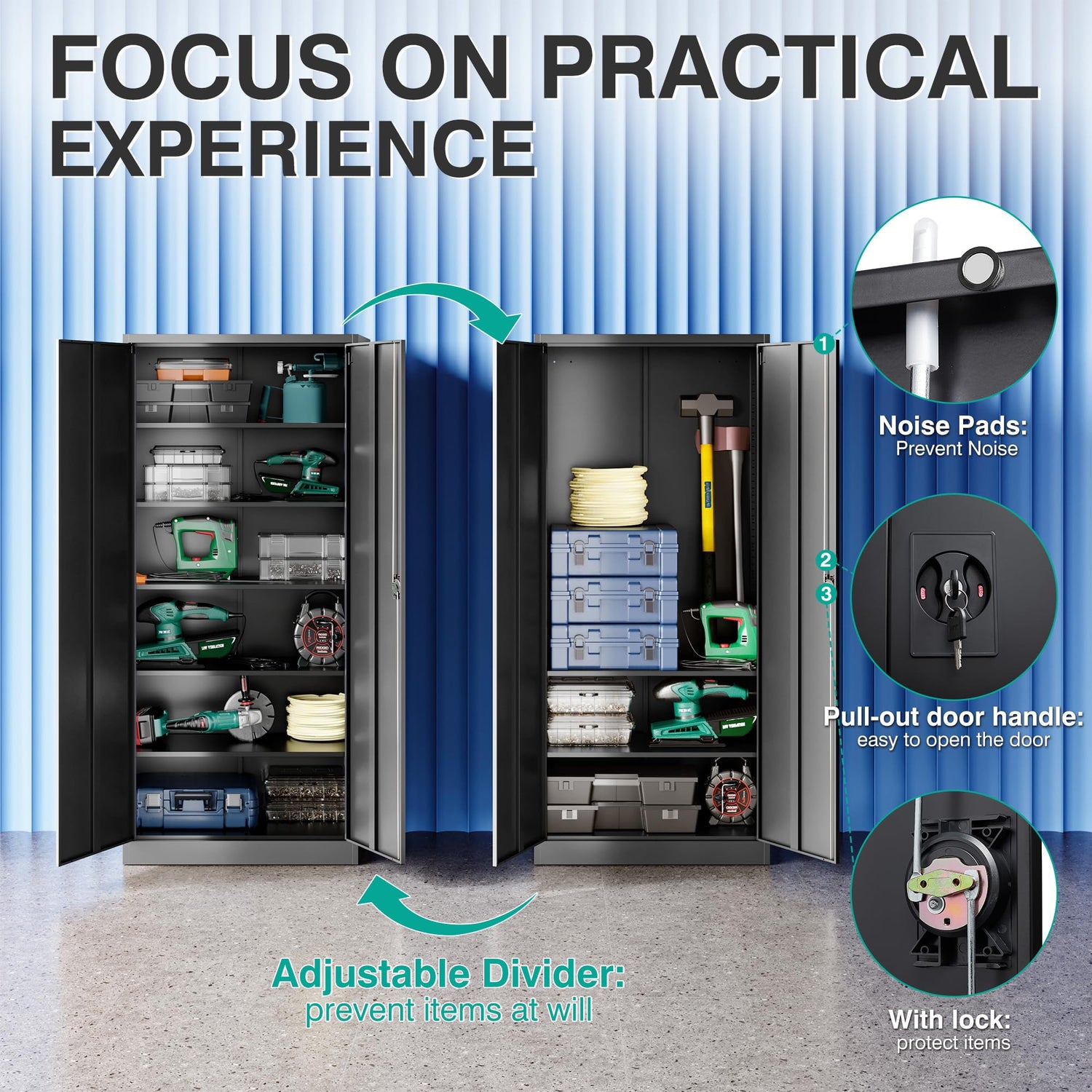 Details: Metal Storage Cabinet with Shelves,Garage Storage Cabinet with Lock,Black Metal Cabinet with Locking Doors,Steel Cabinet,Lockable Storage Cabinet for Home,Office,Shop,Garage Cabinets 72x36x18