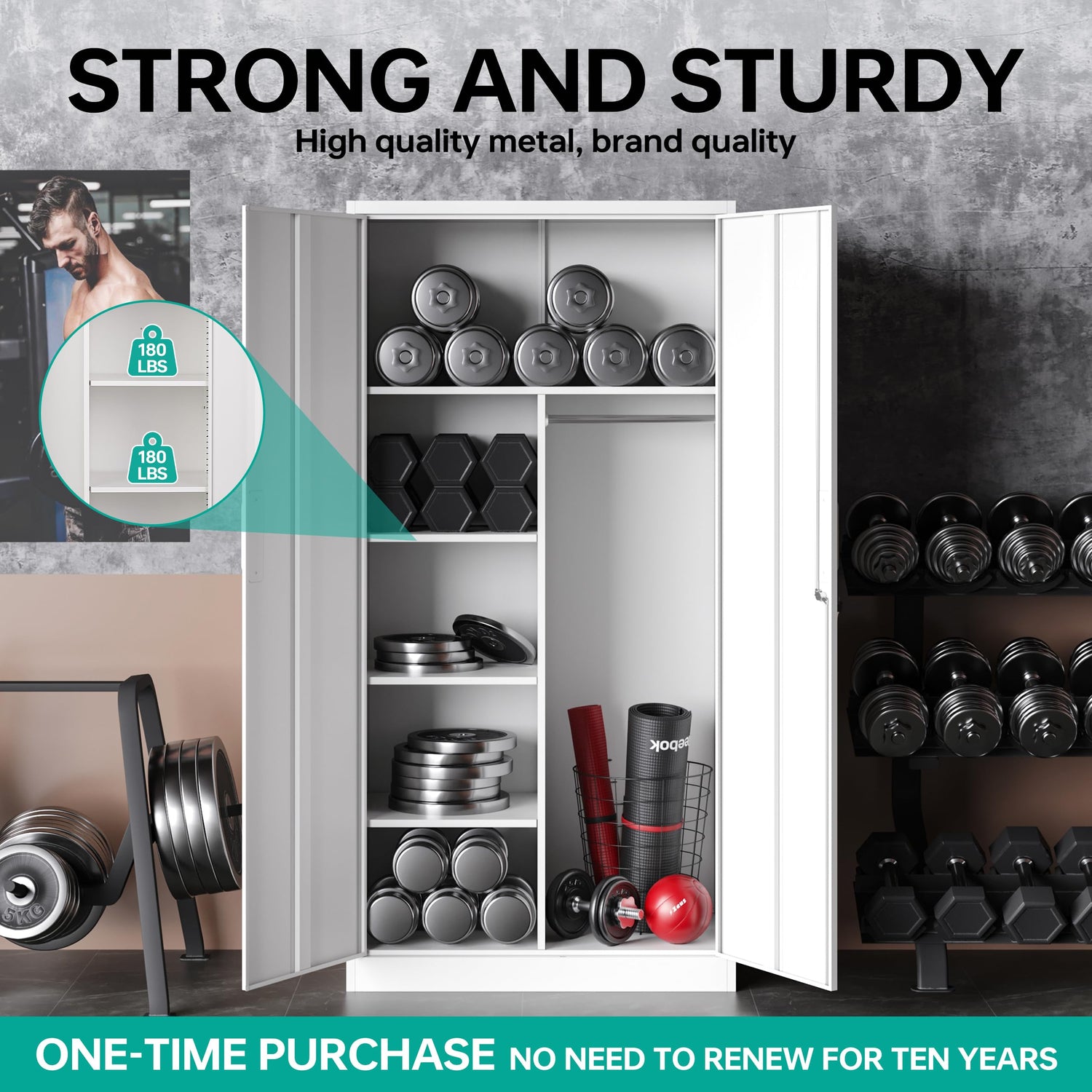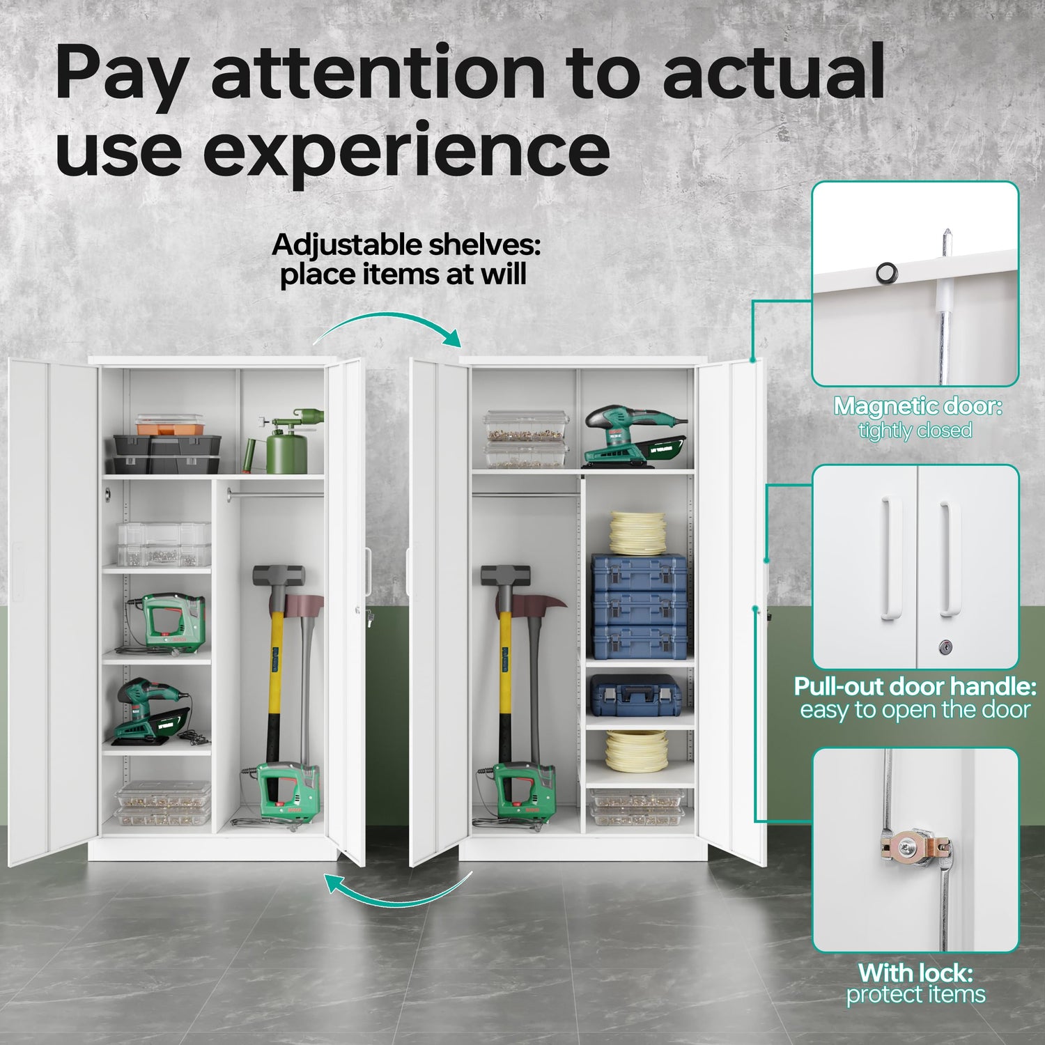 - ✔️【Secure storage】: The closet have a lock with 2 keys, the lock adopts three-point locking system, which can ensure that the storage items are very safe and help you to prevent unauthorized access.