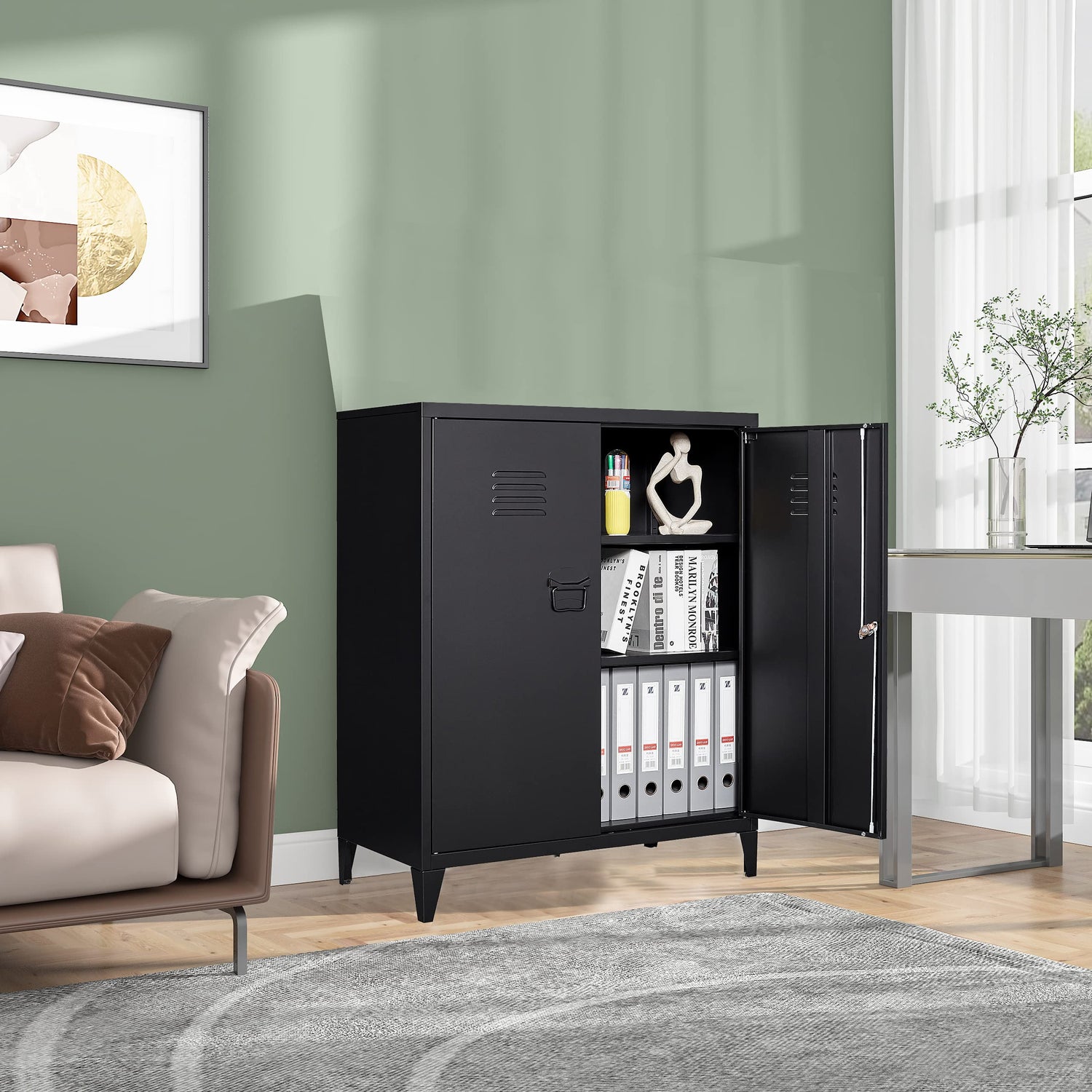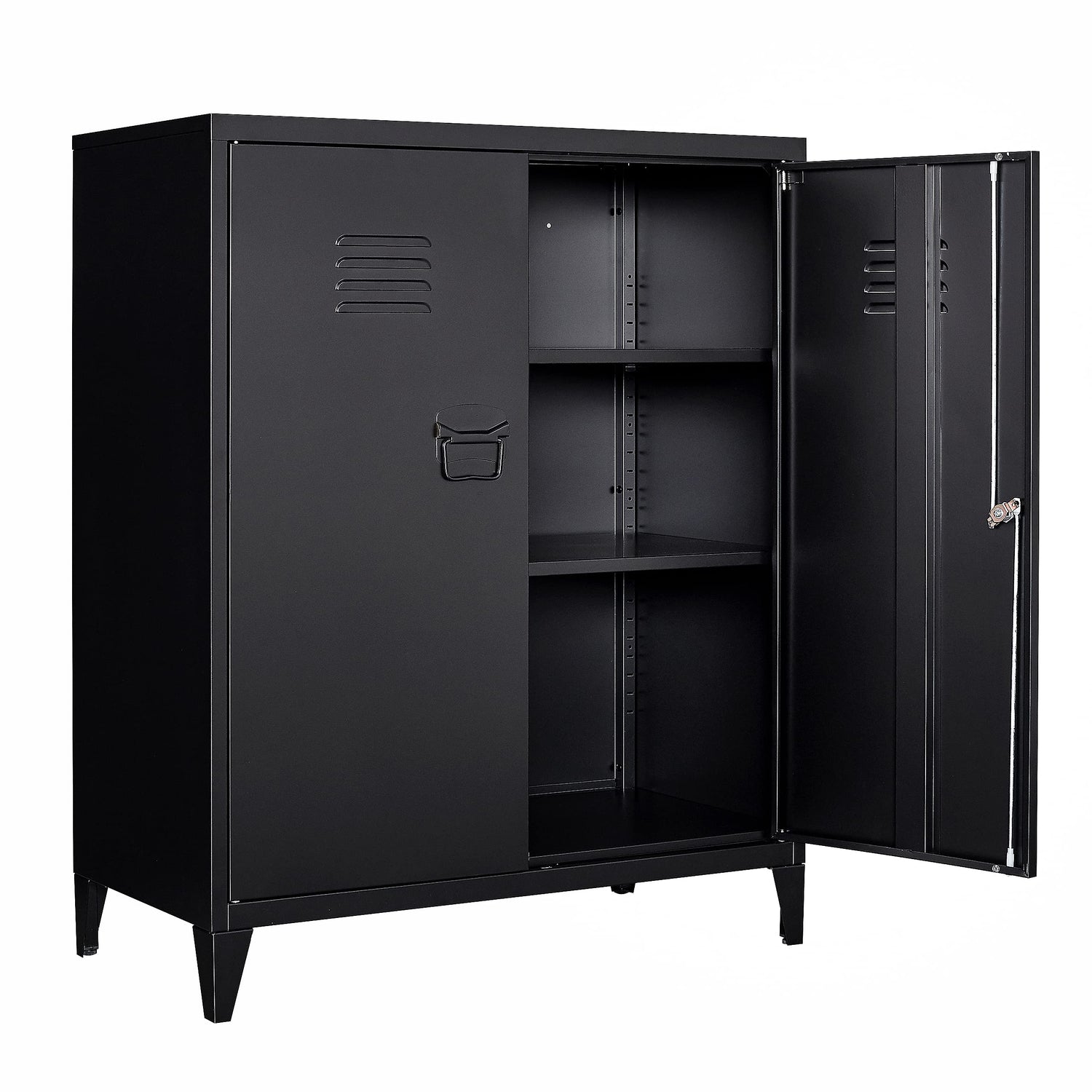 - ✔️☆【Large Storage Space】: 39.4"Hx 31.5"Wx15.7"D locking cabinet, storage cabinet maximum load capacity : 440 lbs, Each shelve can bearing 180 lbs; Our storage cabinet are equipped with 2 adjustable shelves; You can put printer, scanner, fax machines, or anything you want on the top, garage cabinets will be provide a great support for you.