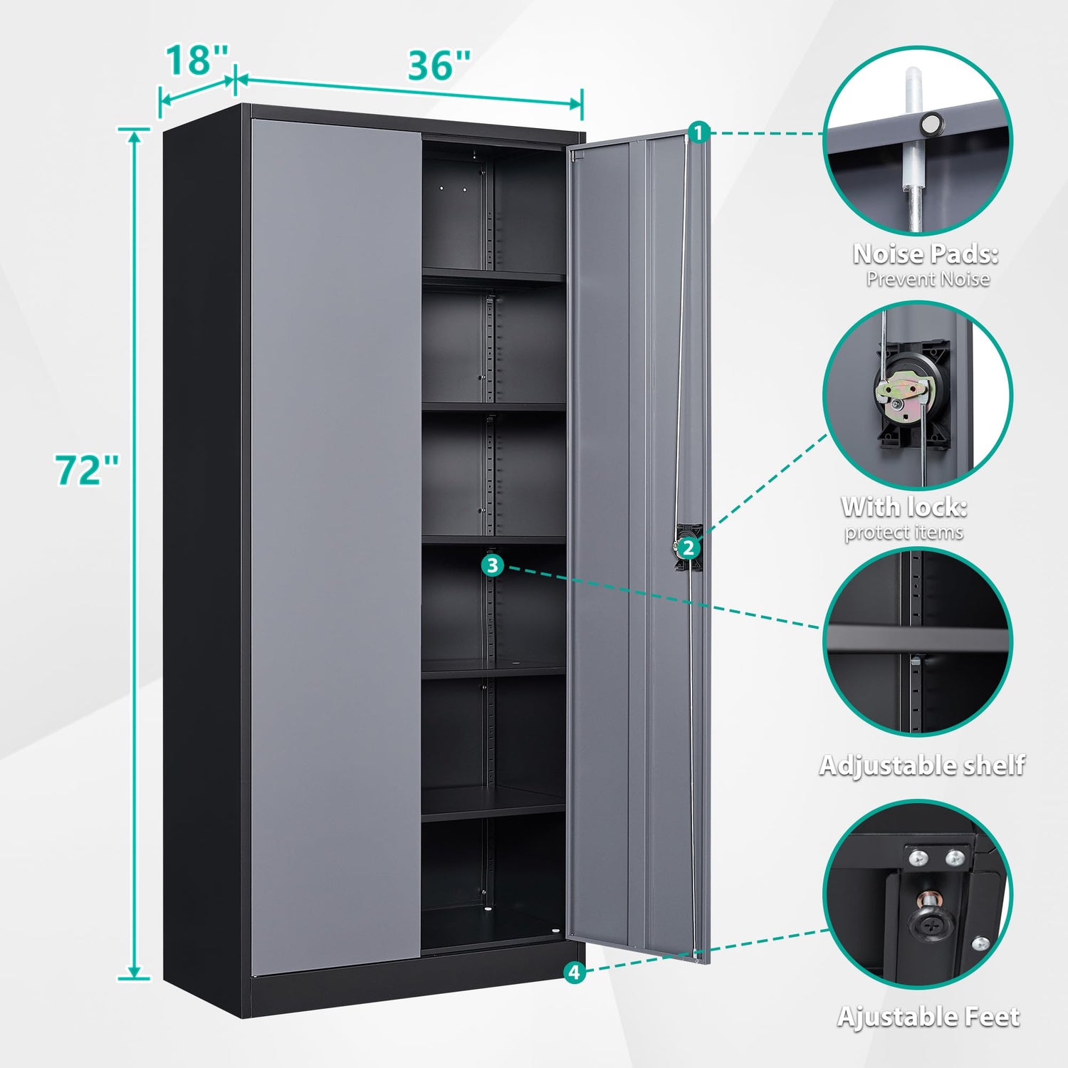 SISESOL Wide & Deep Metal Storage Cabinet with Lock & 5 Adjustable Shelves,72" Gray Garage Storage Cabinet with Locking Doors,Locking Metal Cabinets for Home,Office,Shop,Garage 72x36x18