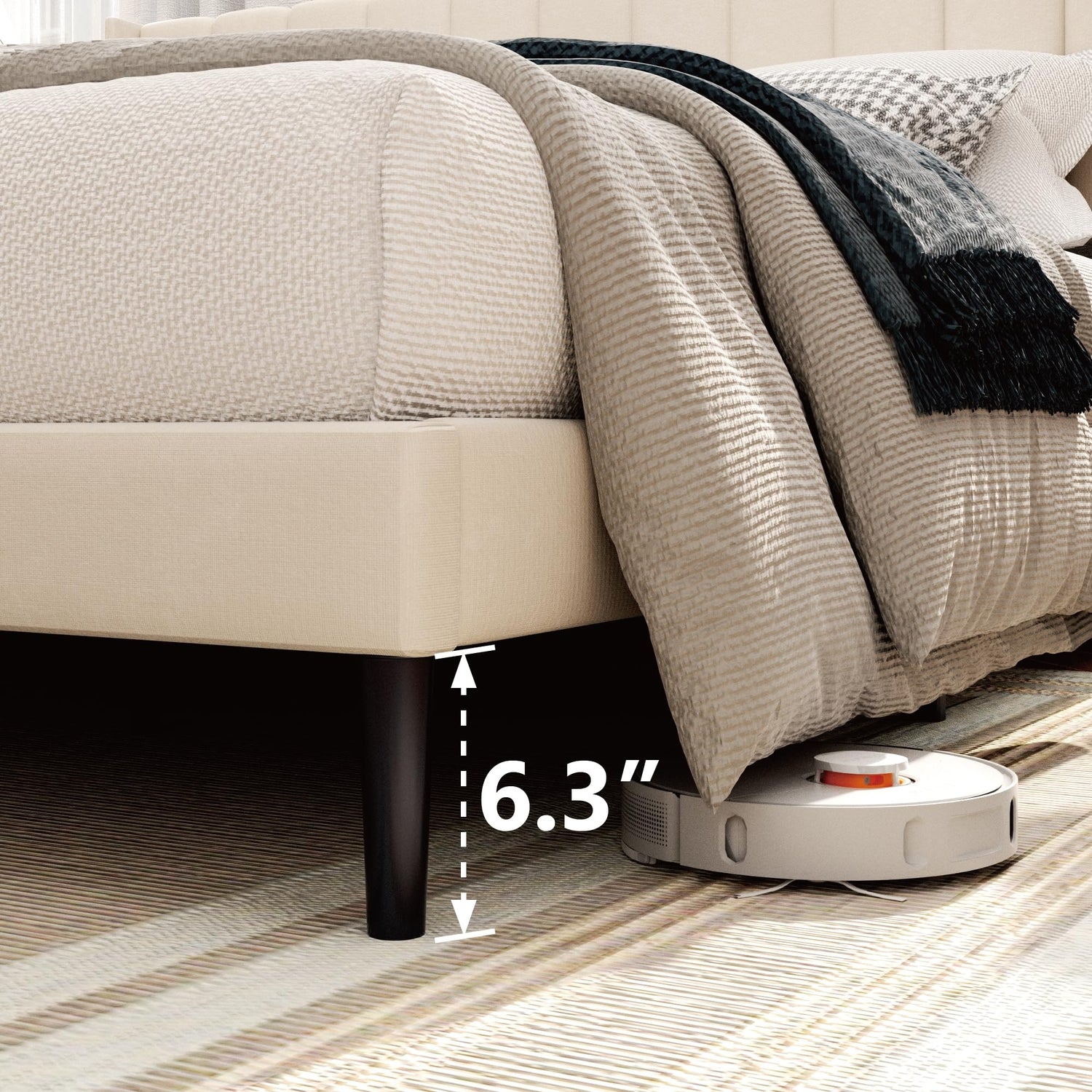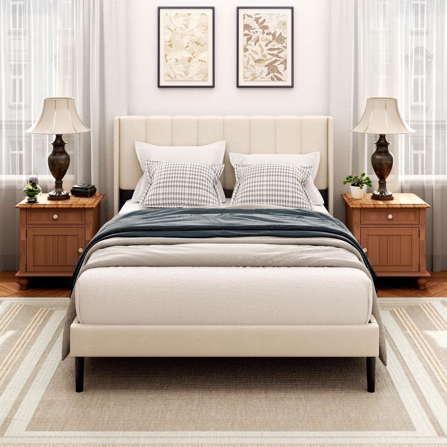 Sismplly Queen Bed Frame with Headboard,Bed Frame Queen Size Vertical Channel Tufted Wingback No Box Spring Needed, Mattress Foundation, Easy Assembly, Beige