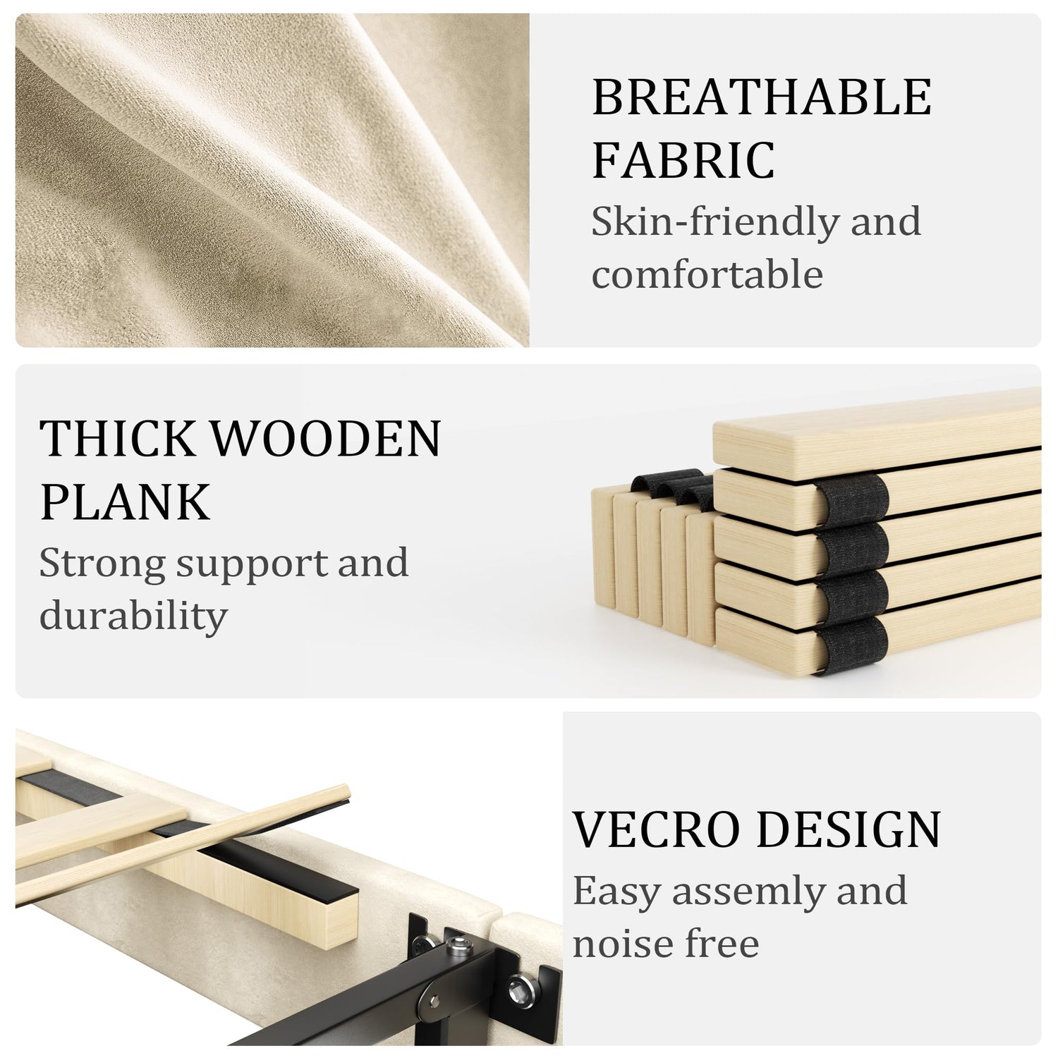 - No Box Spring Needed: Durable velcro wooden slats are designed to support and extend the life of your latex, memory foam, or spring mattress. Mattress thickness recommended being 8"-12".