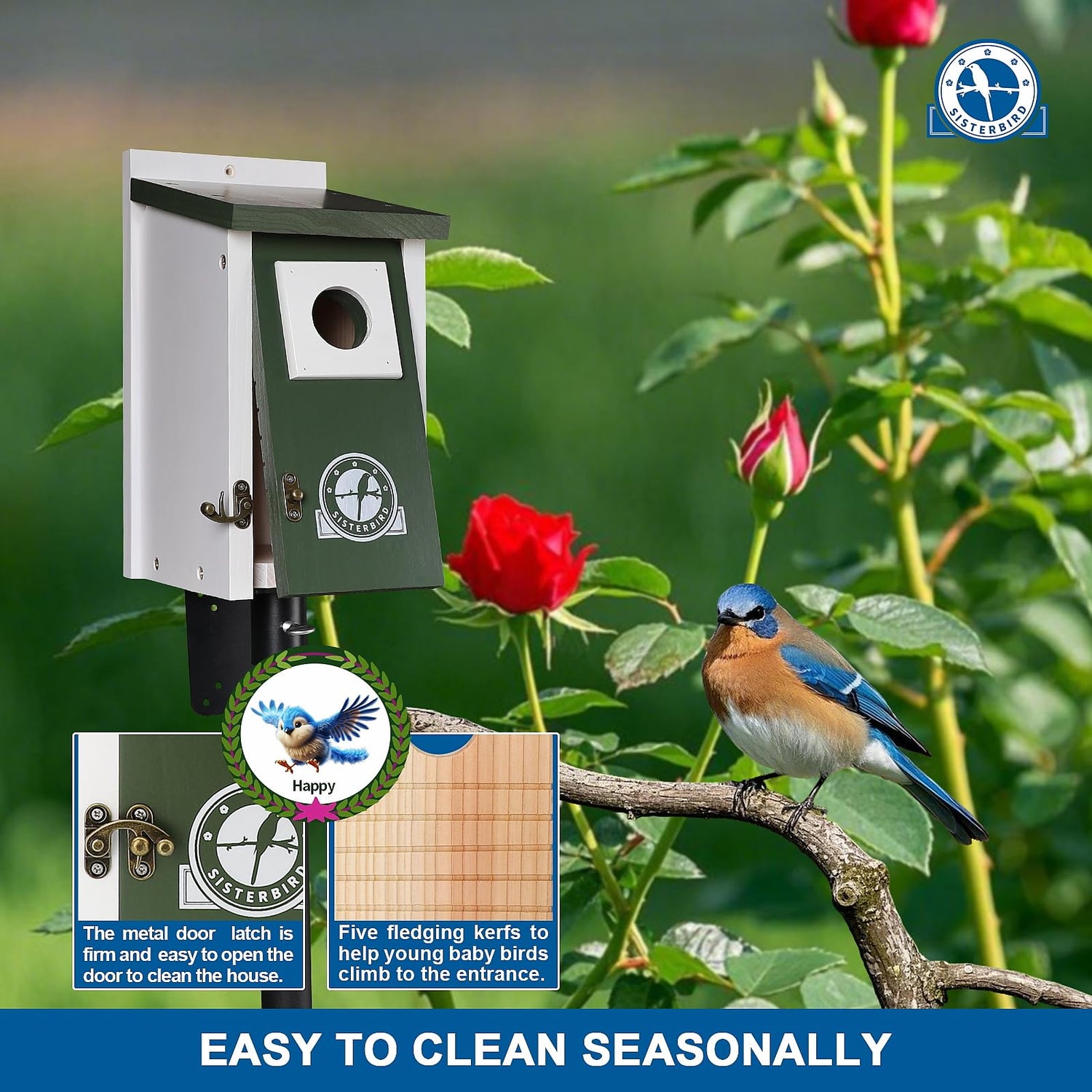 - HIGH QUALITY WOOD: SISTERBIRD bluebird houses is made of high quality solid wood, premium weatherproof coating surface help bird house keep out of the wind and rain, making the birdhouse more durable
