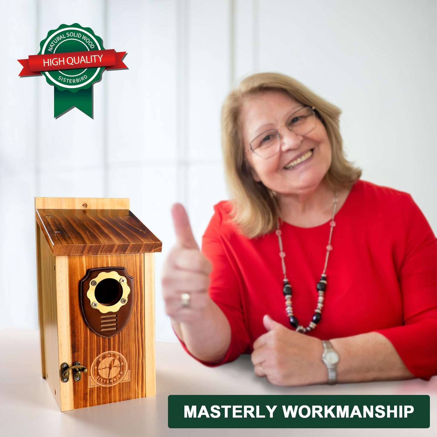 SISTERBIRD Bird Houses for Outside, Premium Wooden Bluebird Houses for Outside, Assembly Birdhouses for Outdoors, Weatherproof Bird House, Bluebird Finch Swallow Wren Chickadee