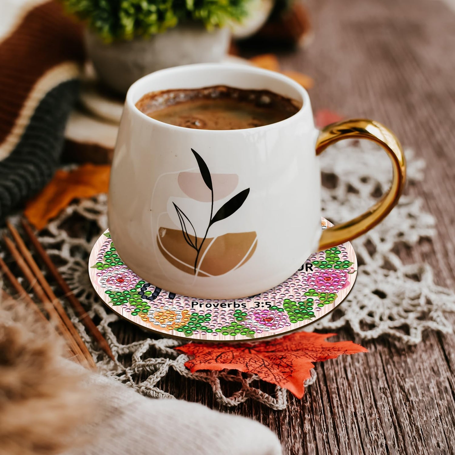 - Bible Verse Diamond Painting Coasters: These christian bible verse diamond painting coasters are about 4 inches in size, suitable for most drinks. You can use these diamond coasters for coffee mugs, wine bottle, spice jars etc.