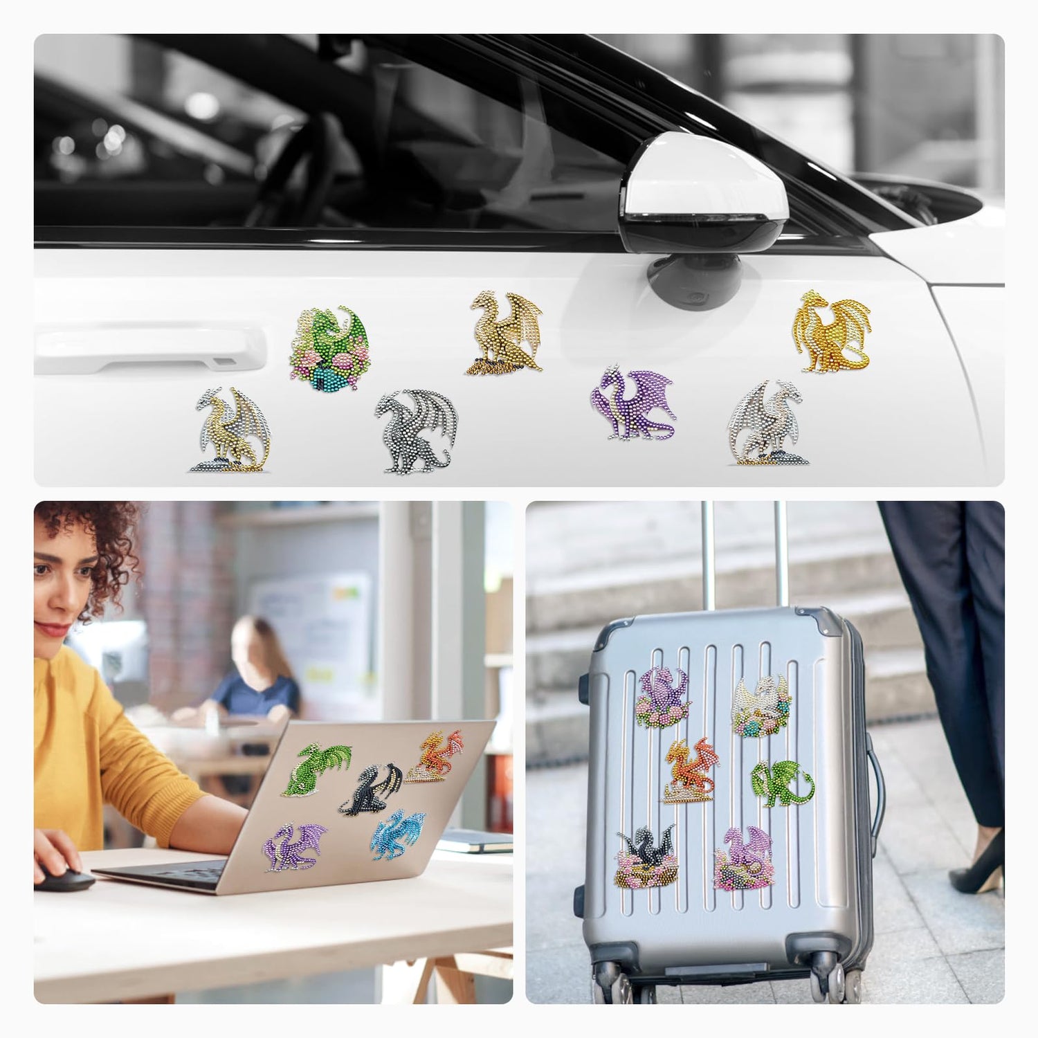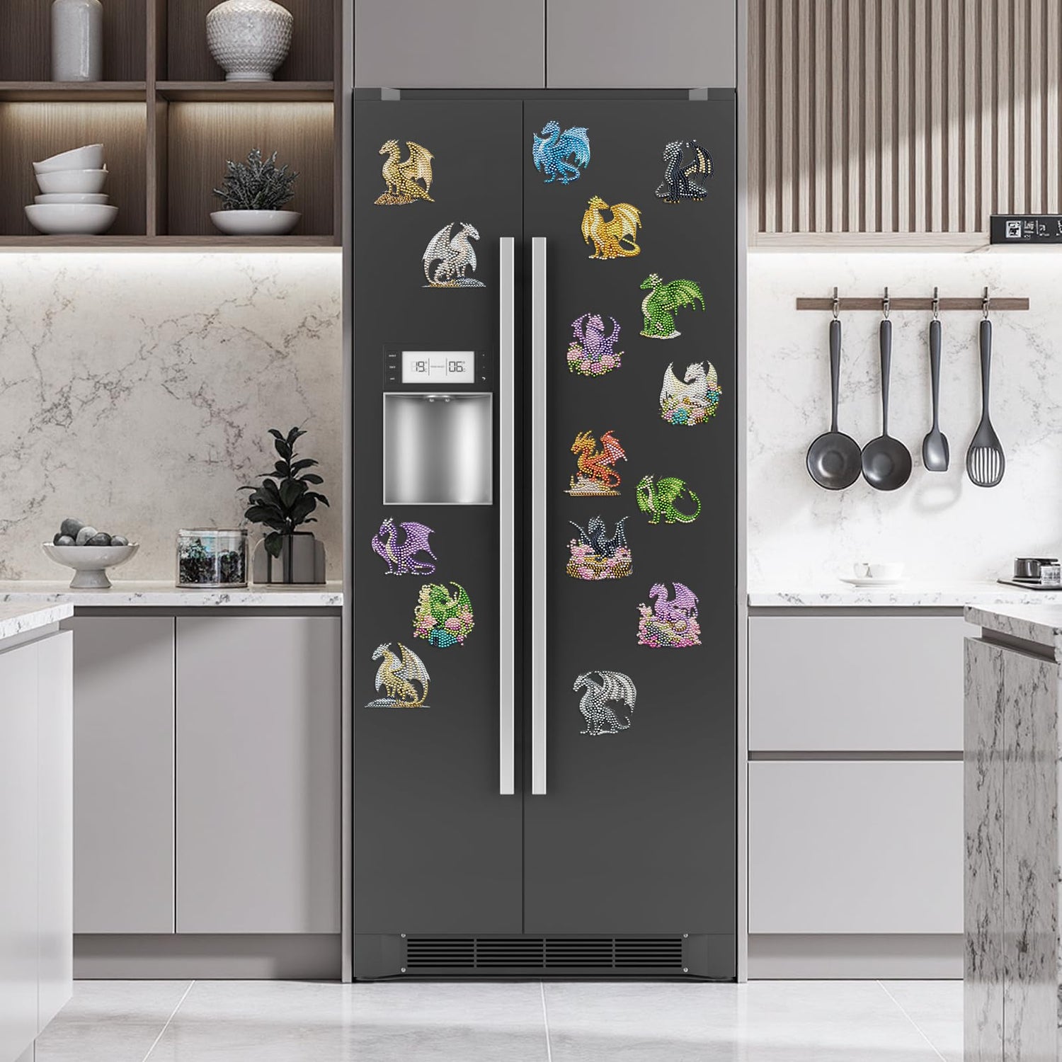 Sitsink Dragon Diamond Painting Magnets - 16 Pcs Small Diamond Art Kits for Adults Refrigerator Stickers, Fantasy Animal Dragon DIY Crafts Making