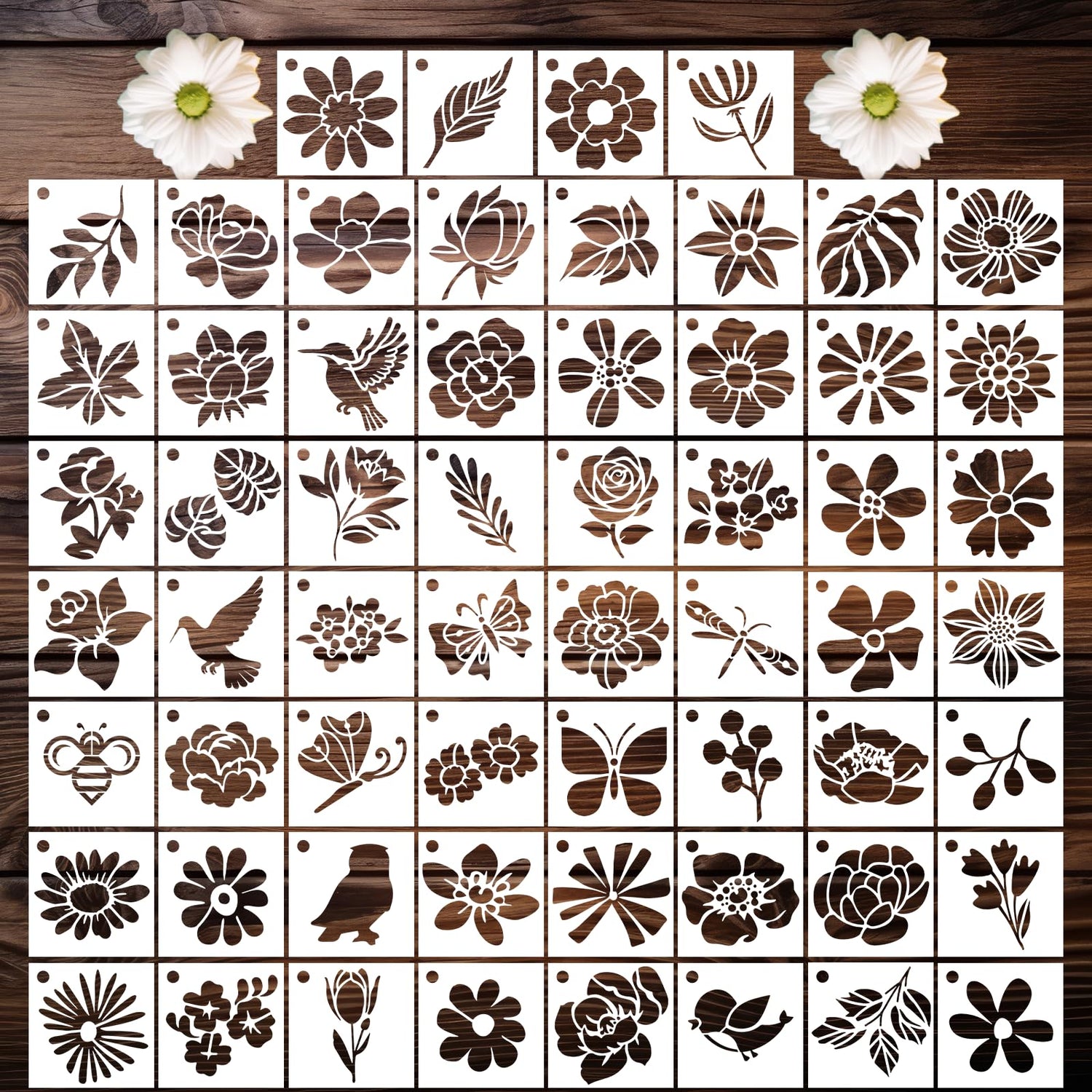 - Package Included: You will receive 60 Pcs of floral themed painting stencils; They are in sufficient quantity to meet your personalized needs; Each template measures 2 x 2 inch, which is a good size and easy to carry, allowing you to create DIY creations anywhere and anytime