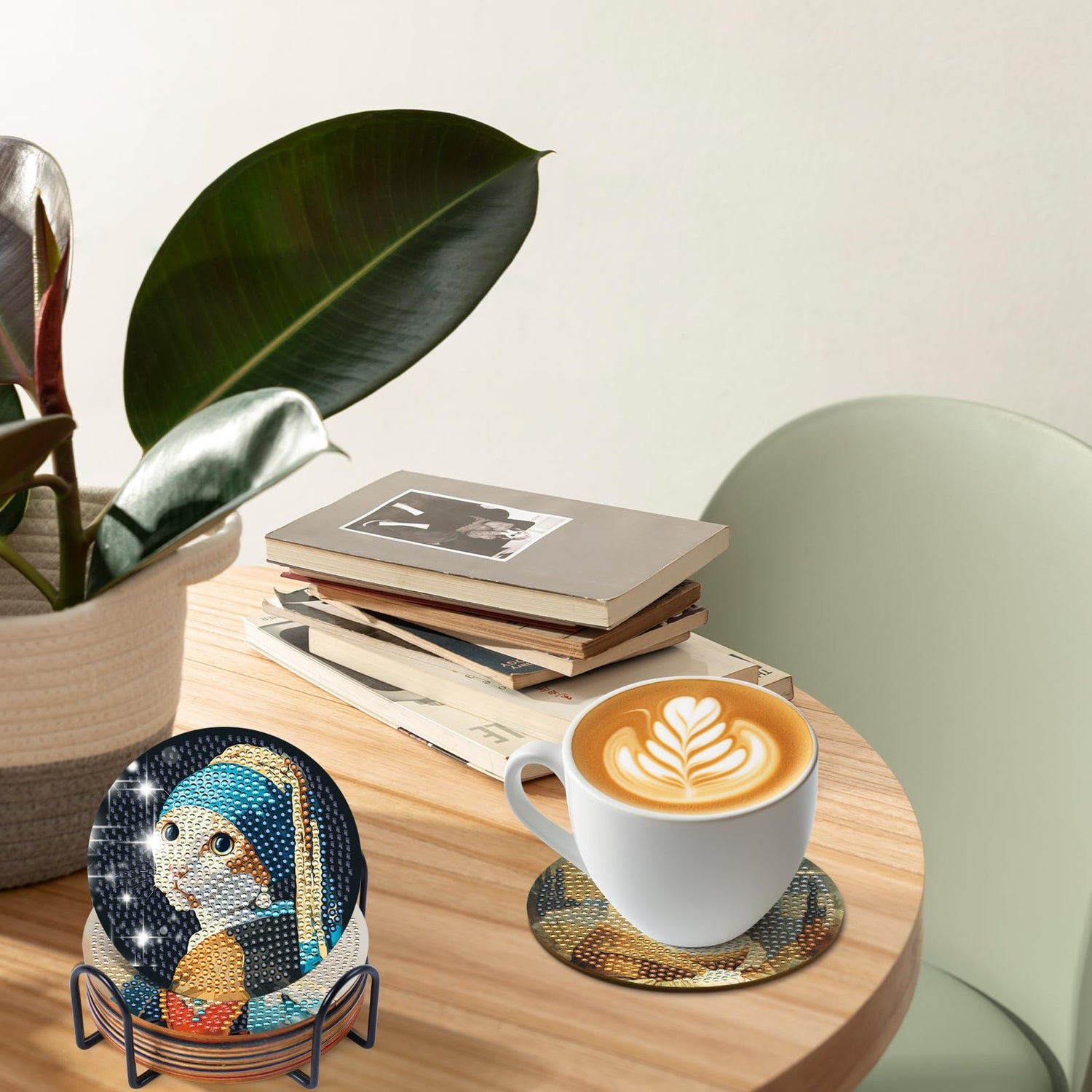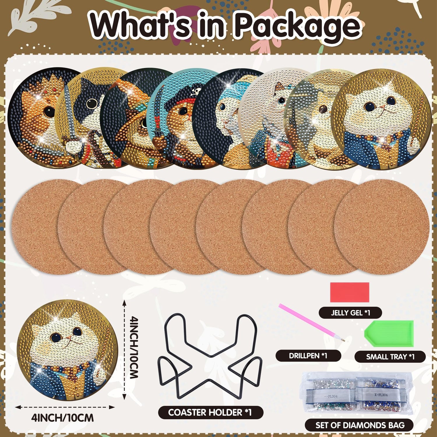 - Whimsical Pet Portrait Designs: Featuring charming diamond art coasters with adorable, artistically styled cats dressed in costumes, these designs bring a playful, artistic vibe to any decor setting