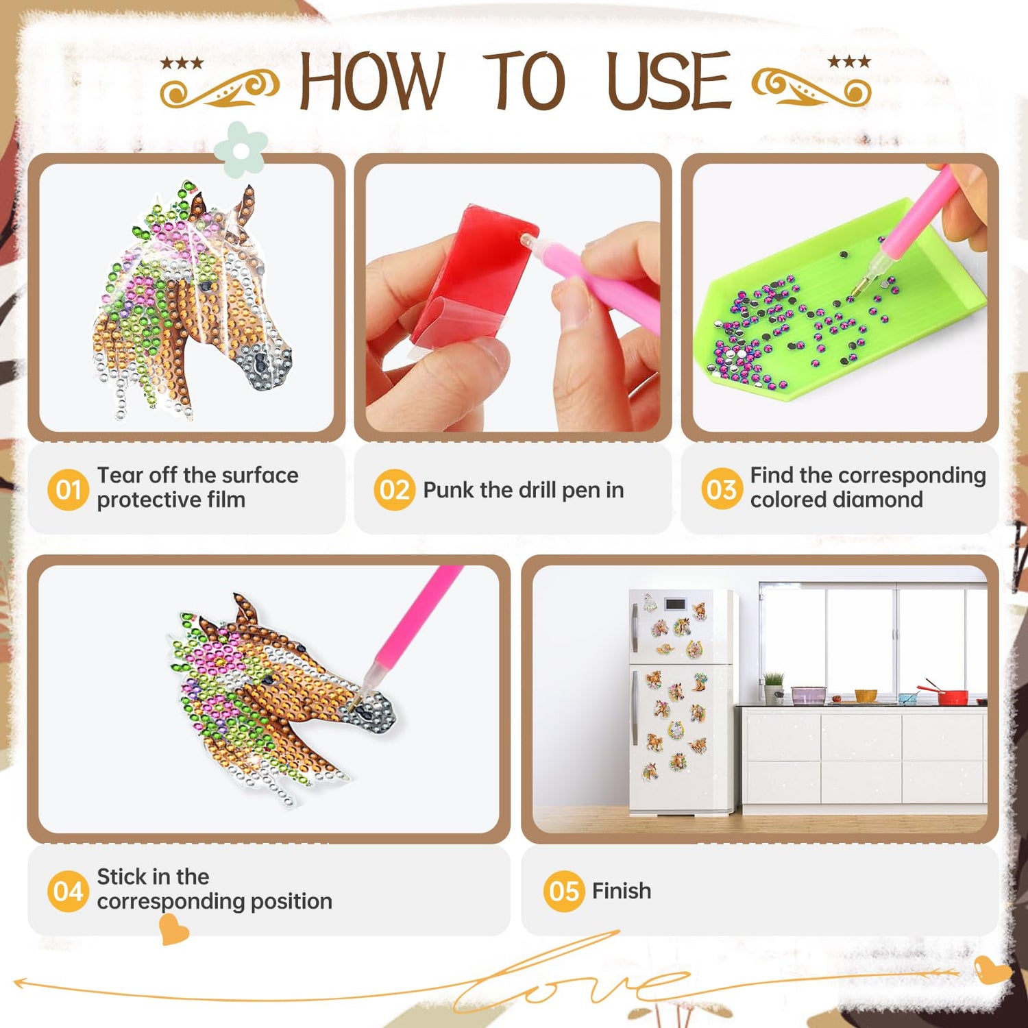 - Package Includes: You will receive 16 different styles of horse themed beautiful diamond painting magnets; Each magnet shows a different cute horse; They are in sufficient quantity and various styles to perfectly meet your needs for refrigerator magnets