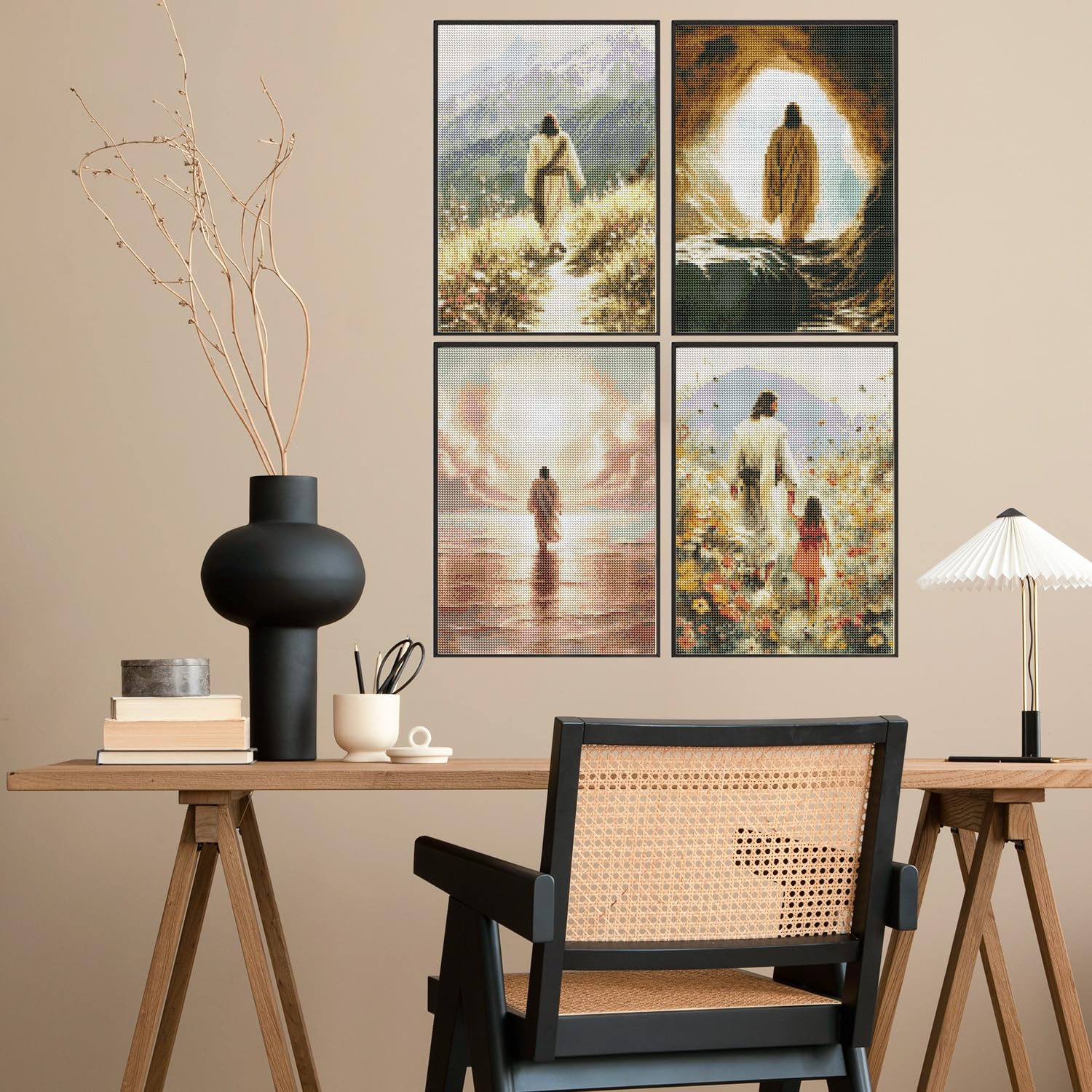 - Soulful Religious Themes:These diamond painting kits feature deeply touching religious-themed artworks. Each piece, whether showing Jesus walking with a child, approaching the resurrection cave, or journeying in serene landscapes, evokes strong spiritual emotions and faith