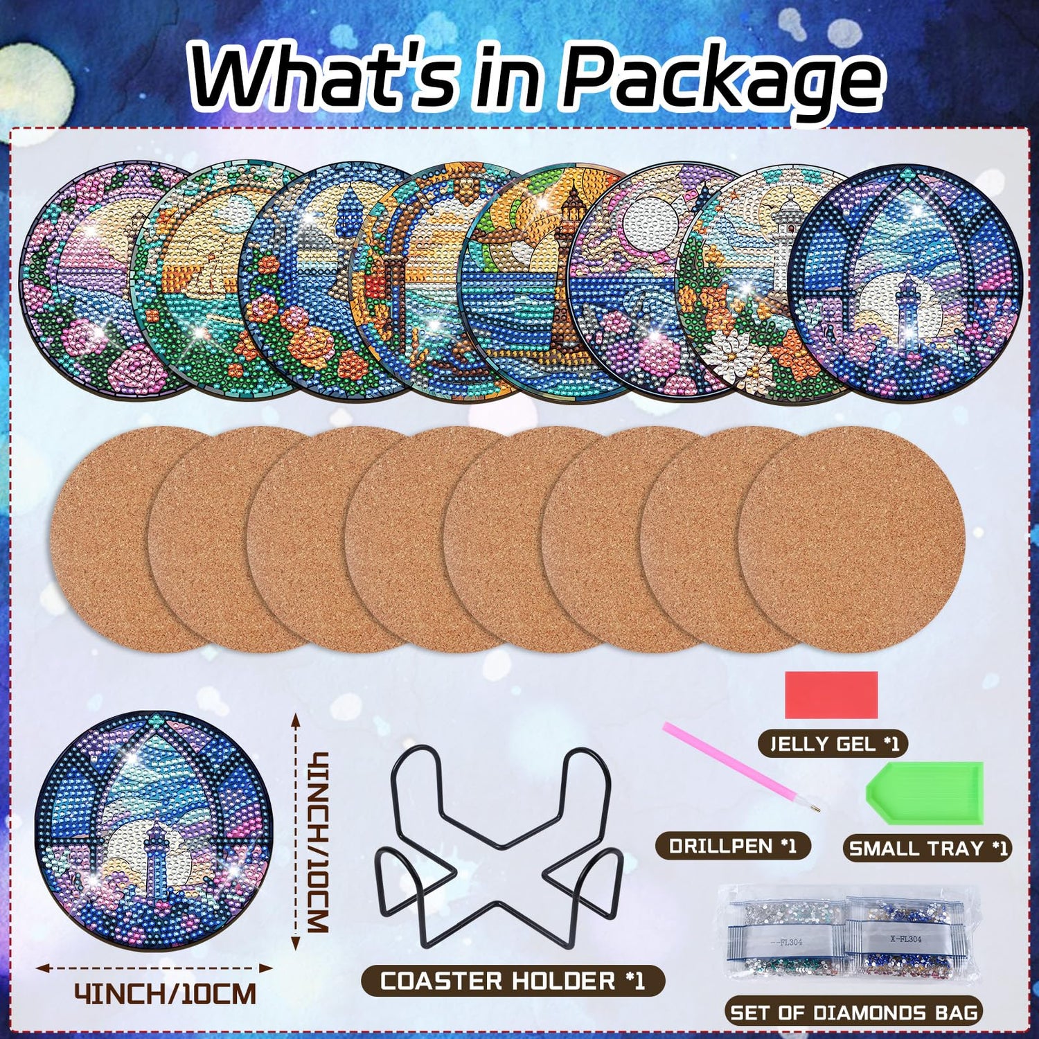 - Package Includes: You will receive 8 lighthouse themed diamond art coasters; Equipped with a stand, color box and other accessories; Each coaster has a unique colorful lighthouse pattern to meet your personalized needs