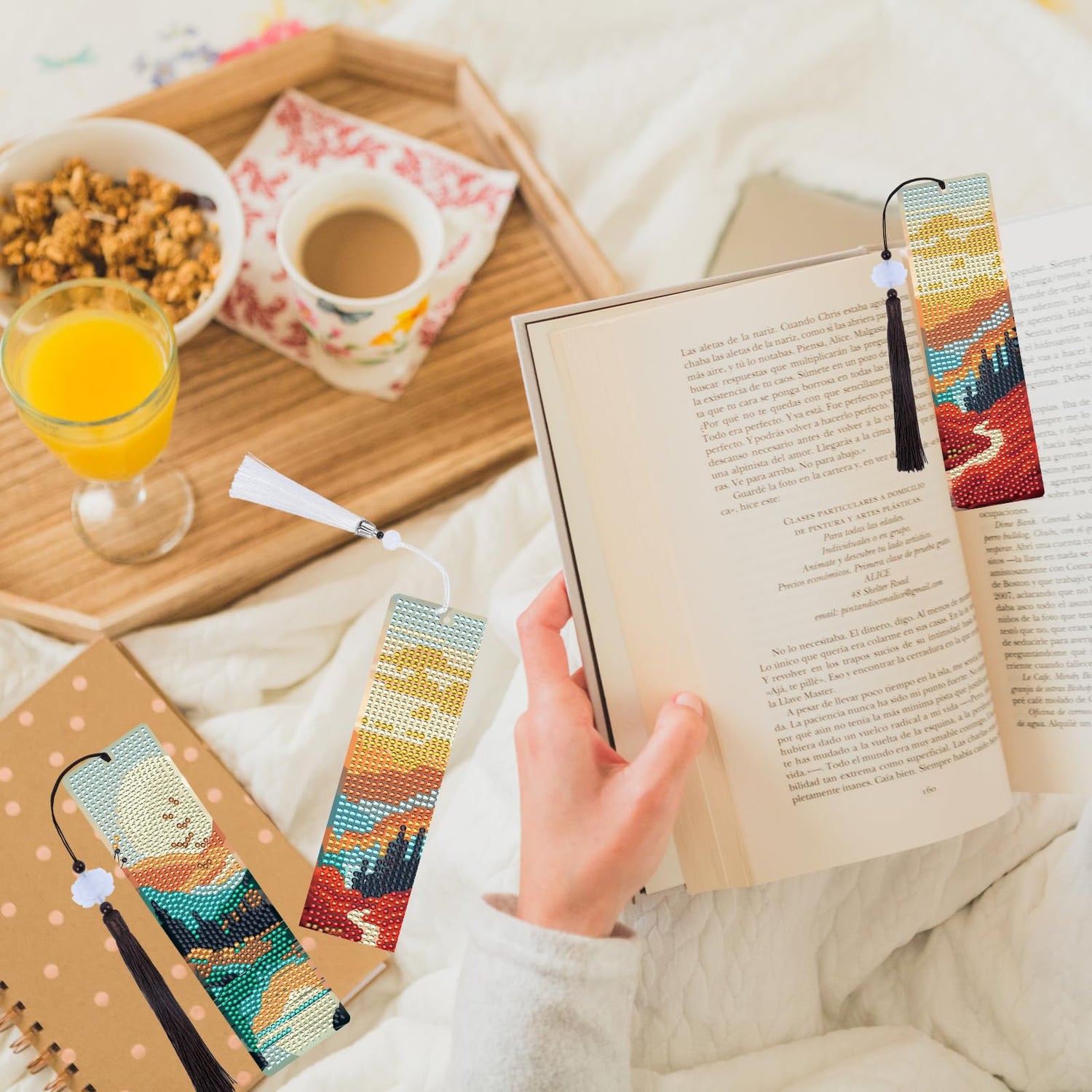 - Stunning Scenery Designs: This sunset sunrise diamond art bookmarks kit features 6 mesmerizing bookmarks showcasing vibrant depictions of landscapes during golden hour, bringing a touch of mountain scenery beauty to your reading experience